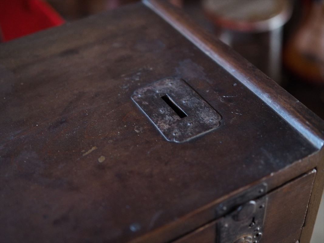 A rare item: a small accounting desk with a coin box from the Edo period.