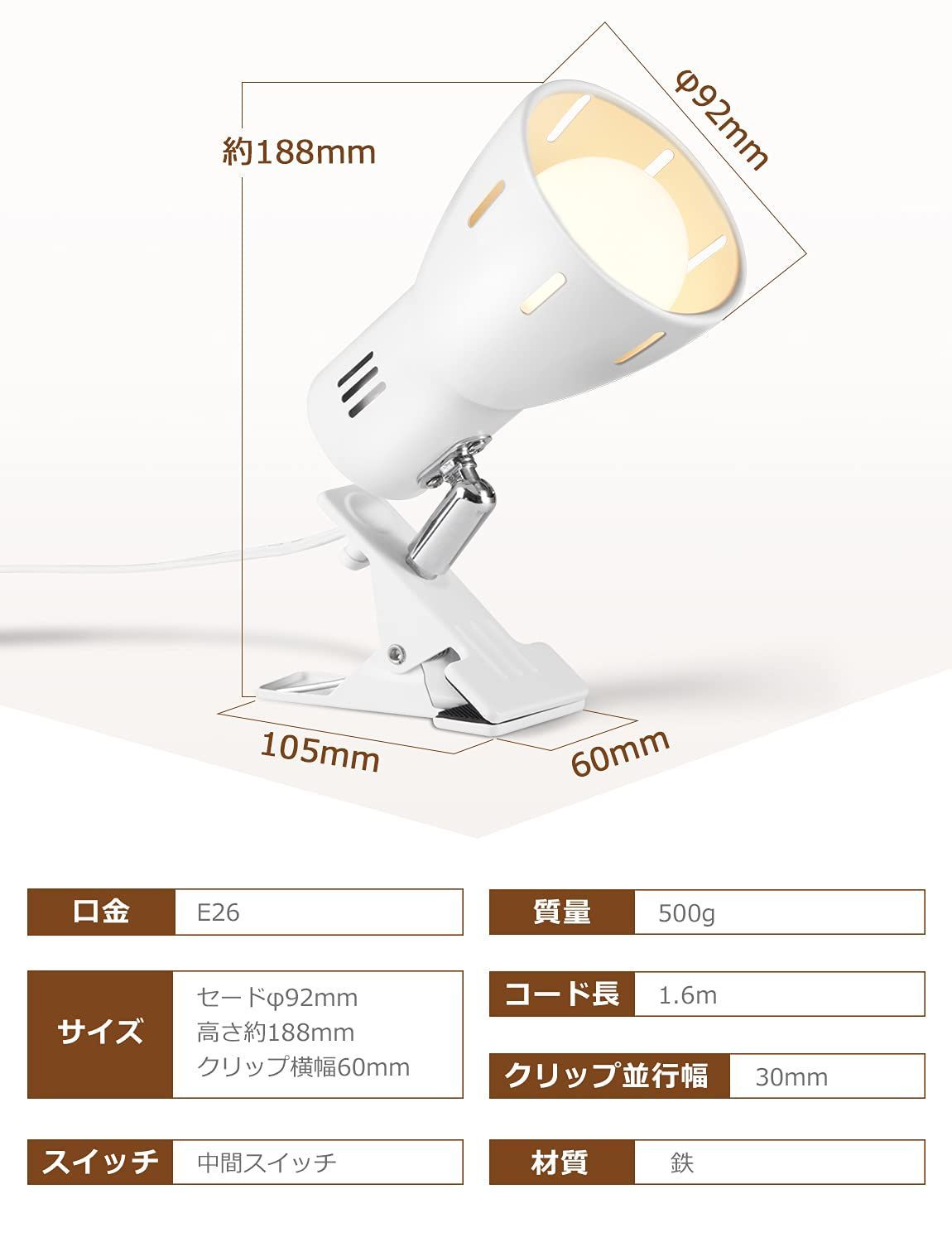 ANZENSHI E26クリップライト 電気スタンド 角度回転 お部屋 寝室 店舗 電球別売り ホワイト