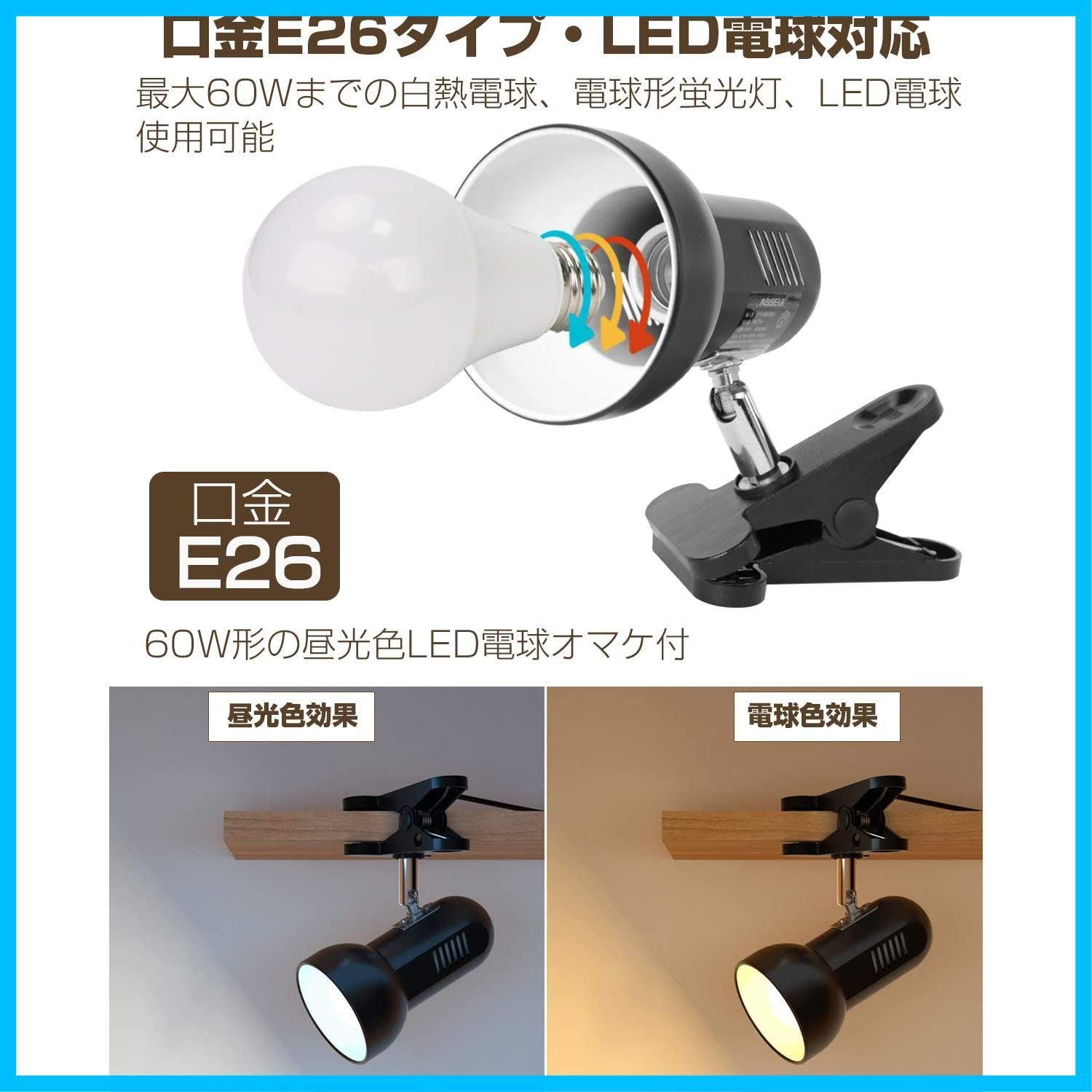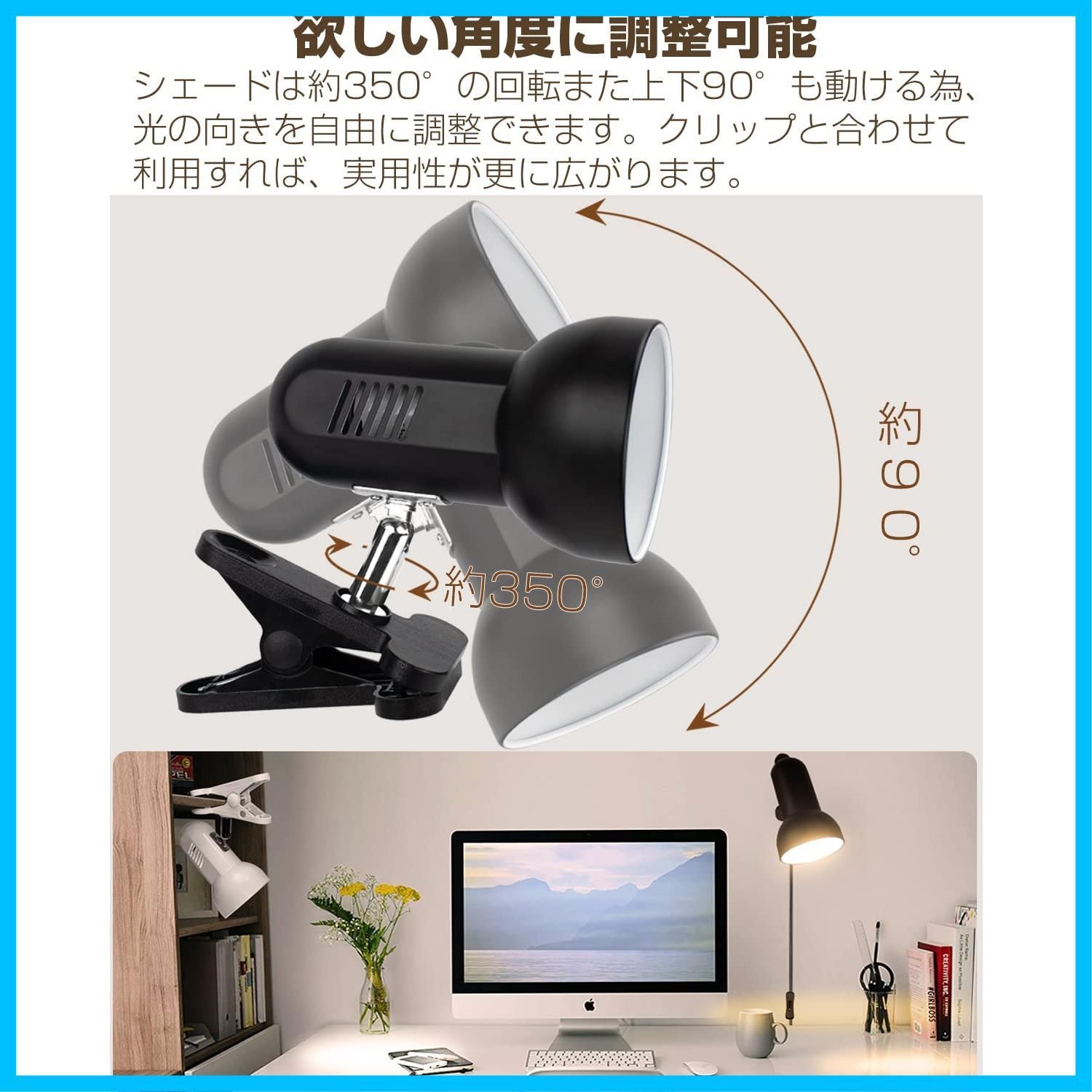 ASSEUI LEDデスクライト クリップライト E26 360°回転 読書 仕事 PC電気 スタンド作業デスク 卓上 ランプ に適用 付属のLED電球 金属製(ブラック)