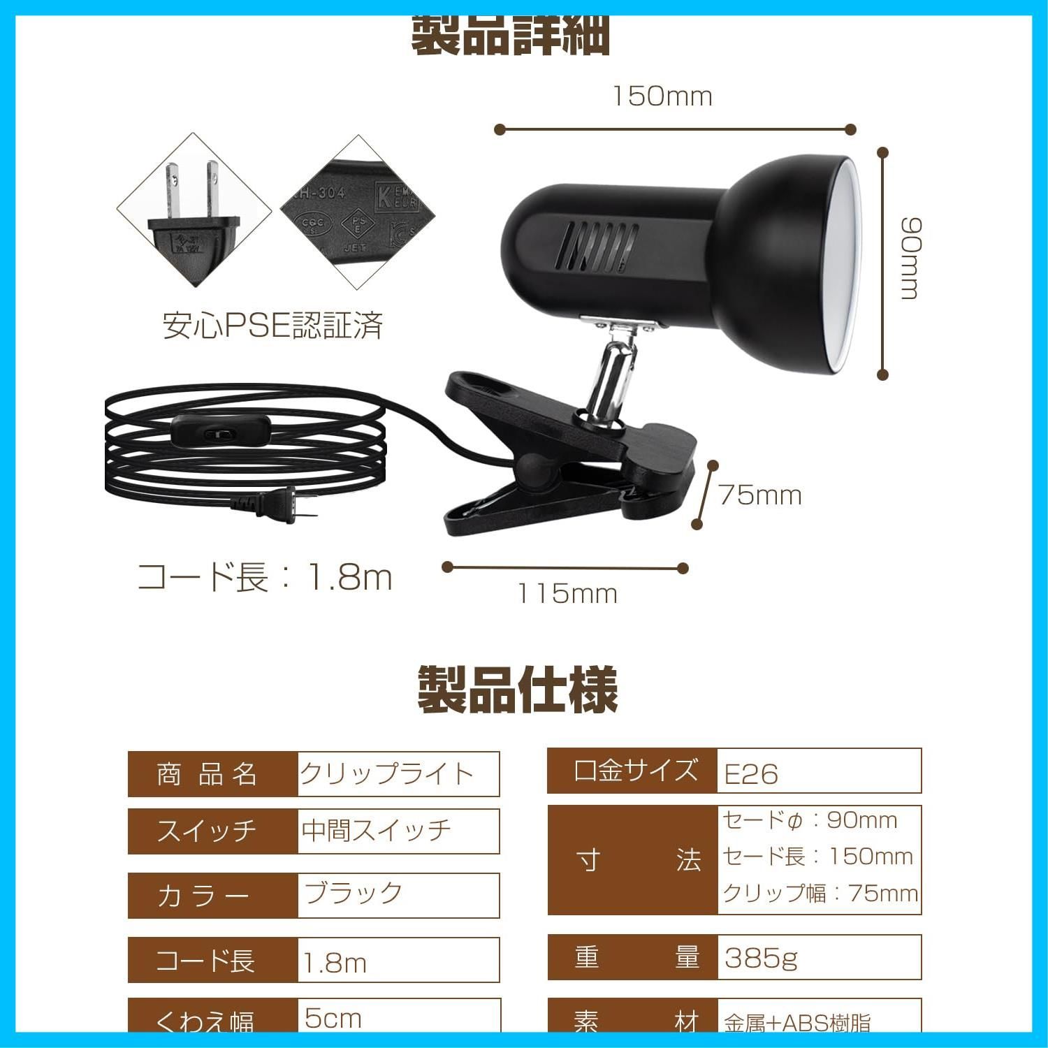 くわえ幅:50mm ●コード長さ:1.8m (オマケ付の昼光色LED電球1PCS )