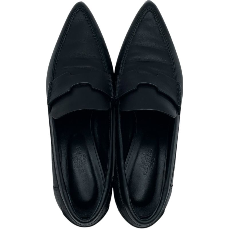 エルメス HERMES グロリアス40 ヒールローファー 231167Z ブラック レザー レディース ローファー