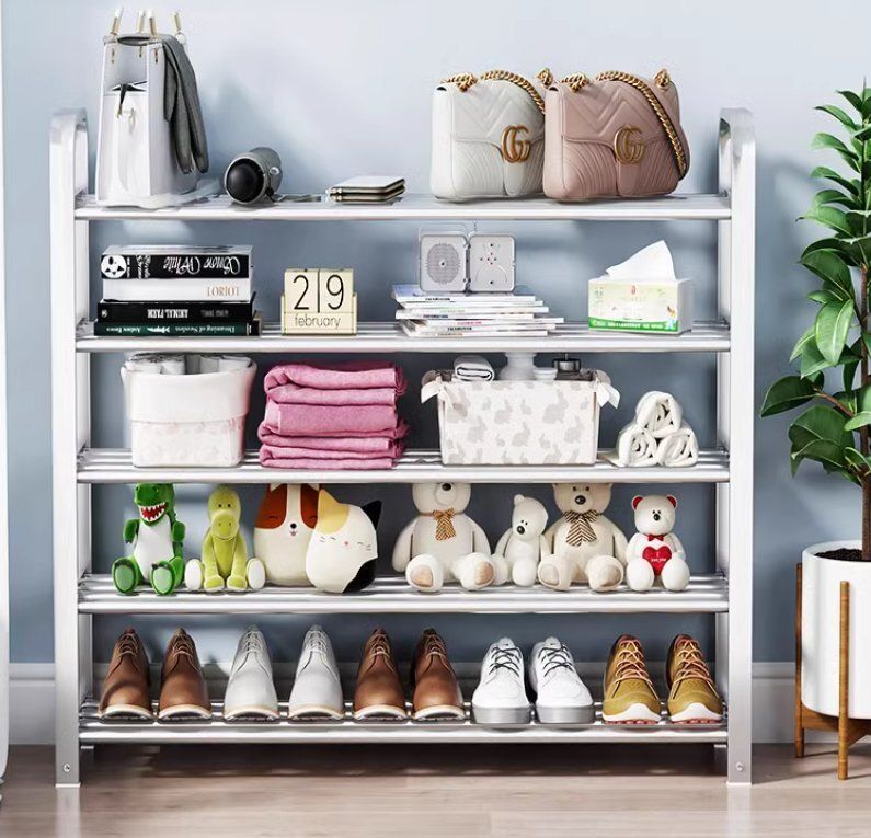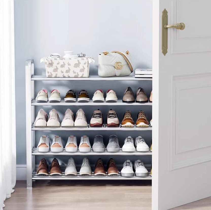 賃貸住宅向け コンパクトな家庭用ステンレス製 多段シューズラック 簡易玄関口用収納棚