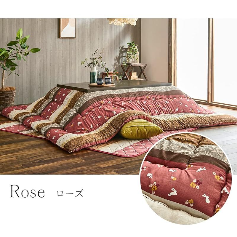 イケヒコ こたつ布団 掛敷セット 長方形 こよみ 約205×245cm ローズ 和 厚掛け うさぎ柄 5965130