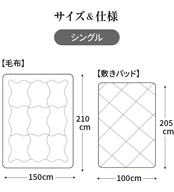 ●サイズ/掛布団:150×210cm、敷パッド:100×205cm