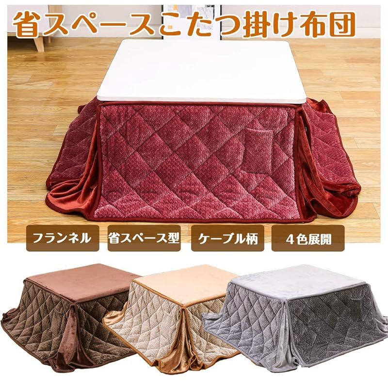 JEMAジェマ 省スペース こたつ布団 こたつ掛け布団 掛け布団単品 ふわふわ感触フランネル生地 ケーブル レッド 約180x220cm 長方形 洗える