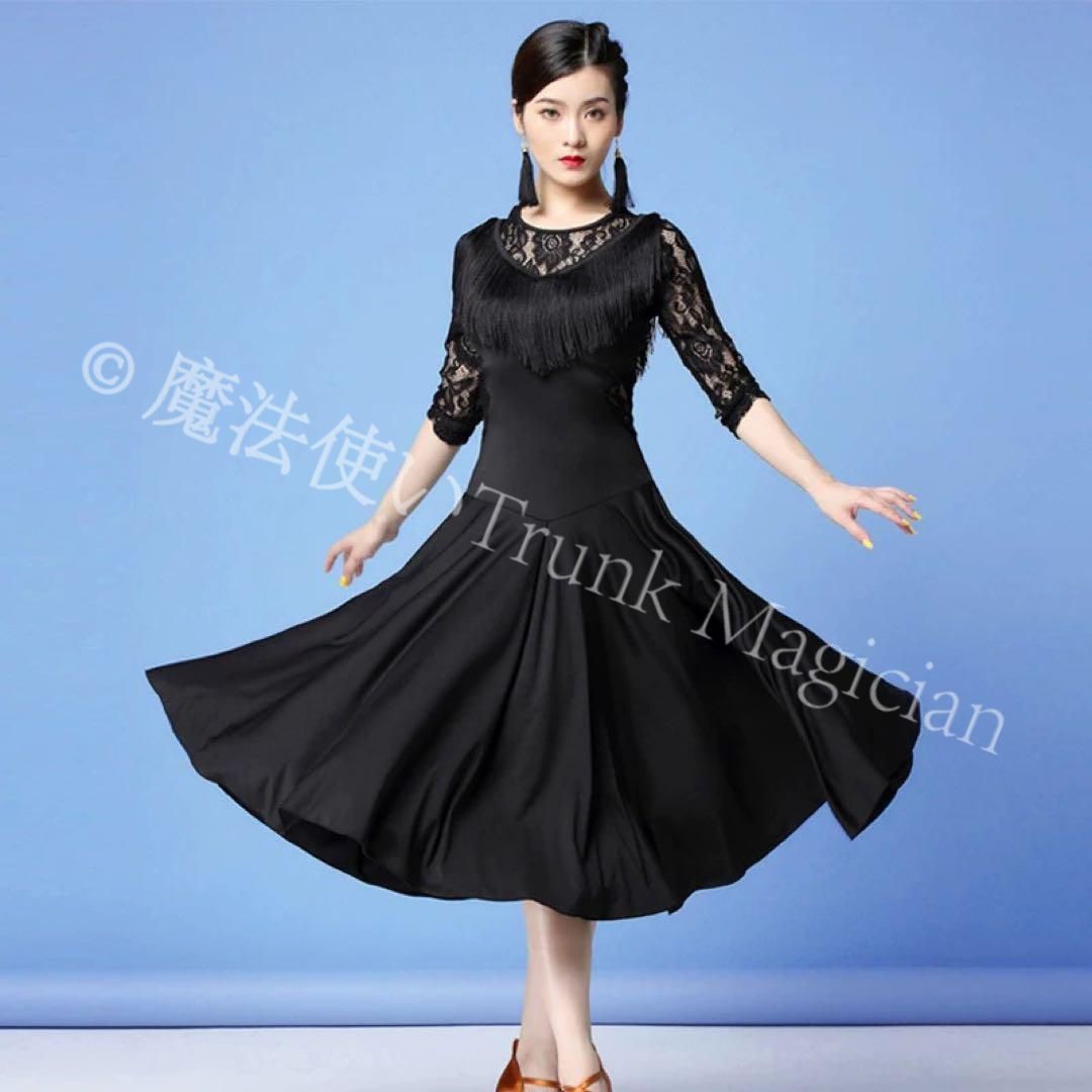 商品詳細:可愛いフリンジが魅力のスタンダード&ラテン兼用ワンピースで、練習着にぴったり!季節を問わず様々なシーンで大活躍しあなたのダンスを華やかに演出します。