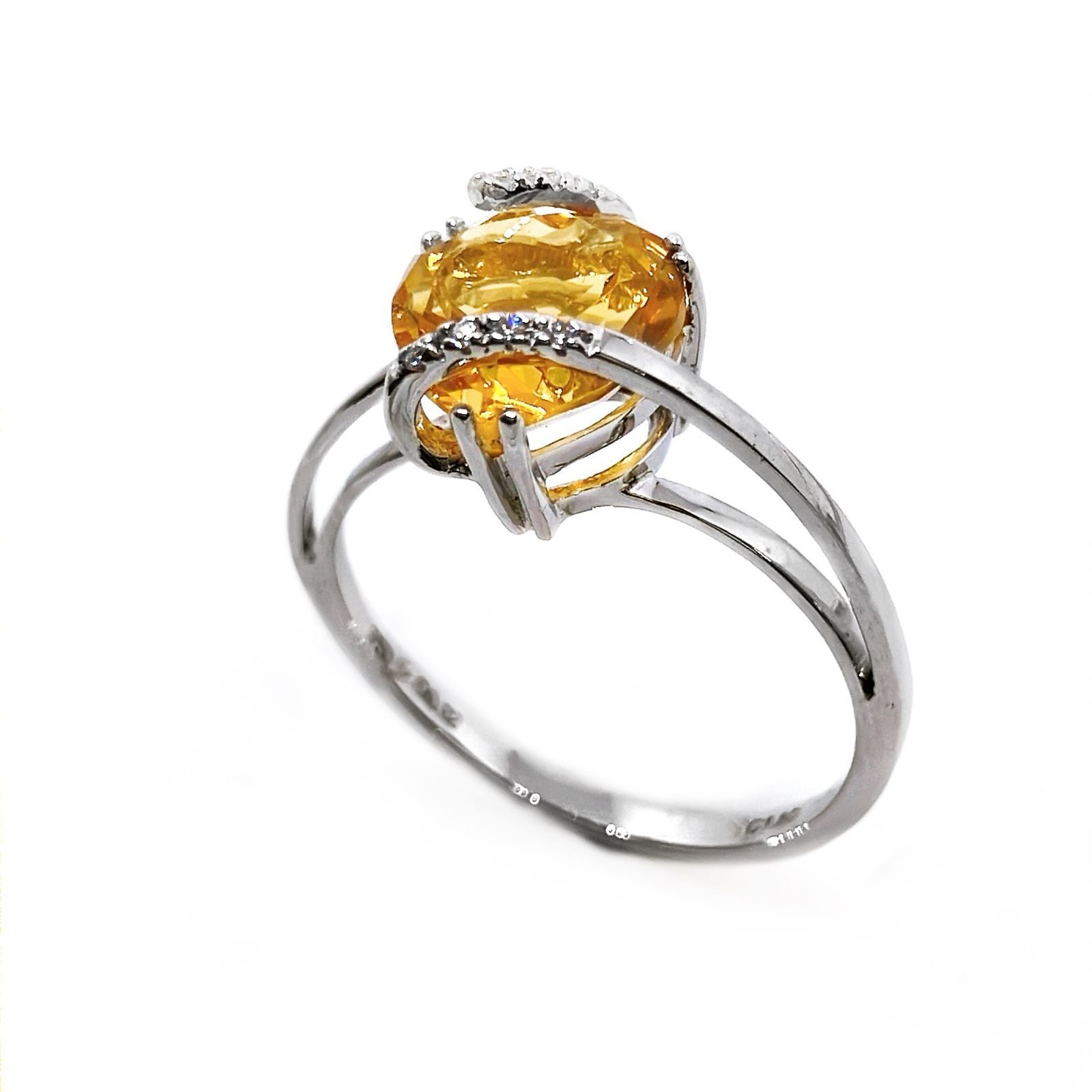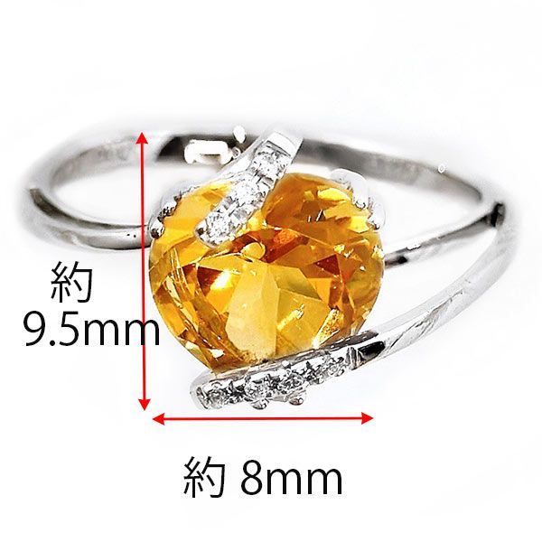 k18wg シトリン ハート リング 指輪 ジュエリー 宝石 イエロー 18金ホワイトゴールド ハニー ハチミツ 蜂蜜 オレンジ 飴色 金木犀 キンモクセイ ダイヤモンド ヒネリ カーブ 大粒 秋 オータム 黄色 天然石 サイズ直しご相談