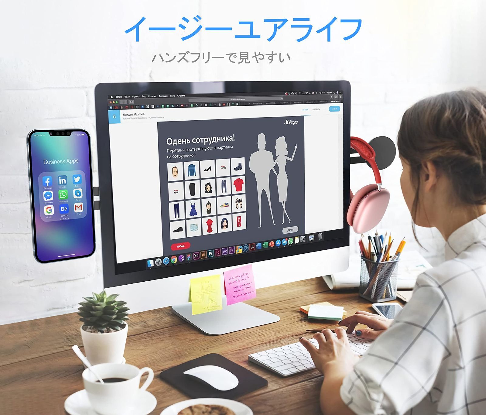 【両手を解放し効率を向上】スマホ パソコン 固定 スタンドですを使用することで、フィットネス、仕事、学習、入浴、調理、家事などの際に両手を自由に使うことができます。スマートフォンを持ち歩く煩わしさから解放され、作業効率が向上します。また、スマートフォンを見ながら作業を行う場合でも、生産性が向上します。