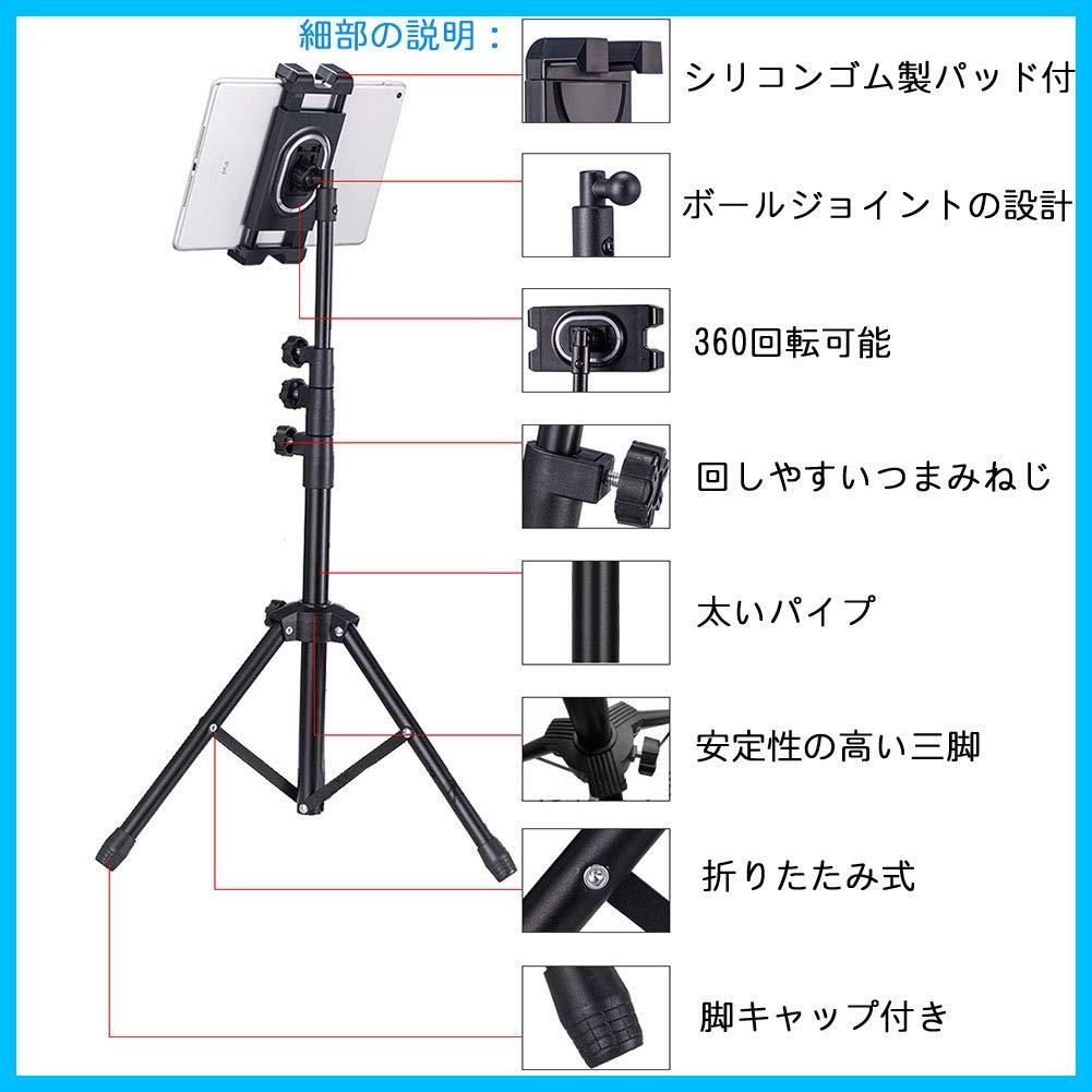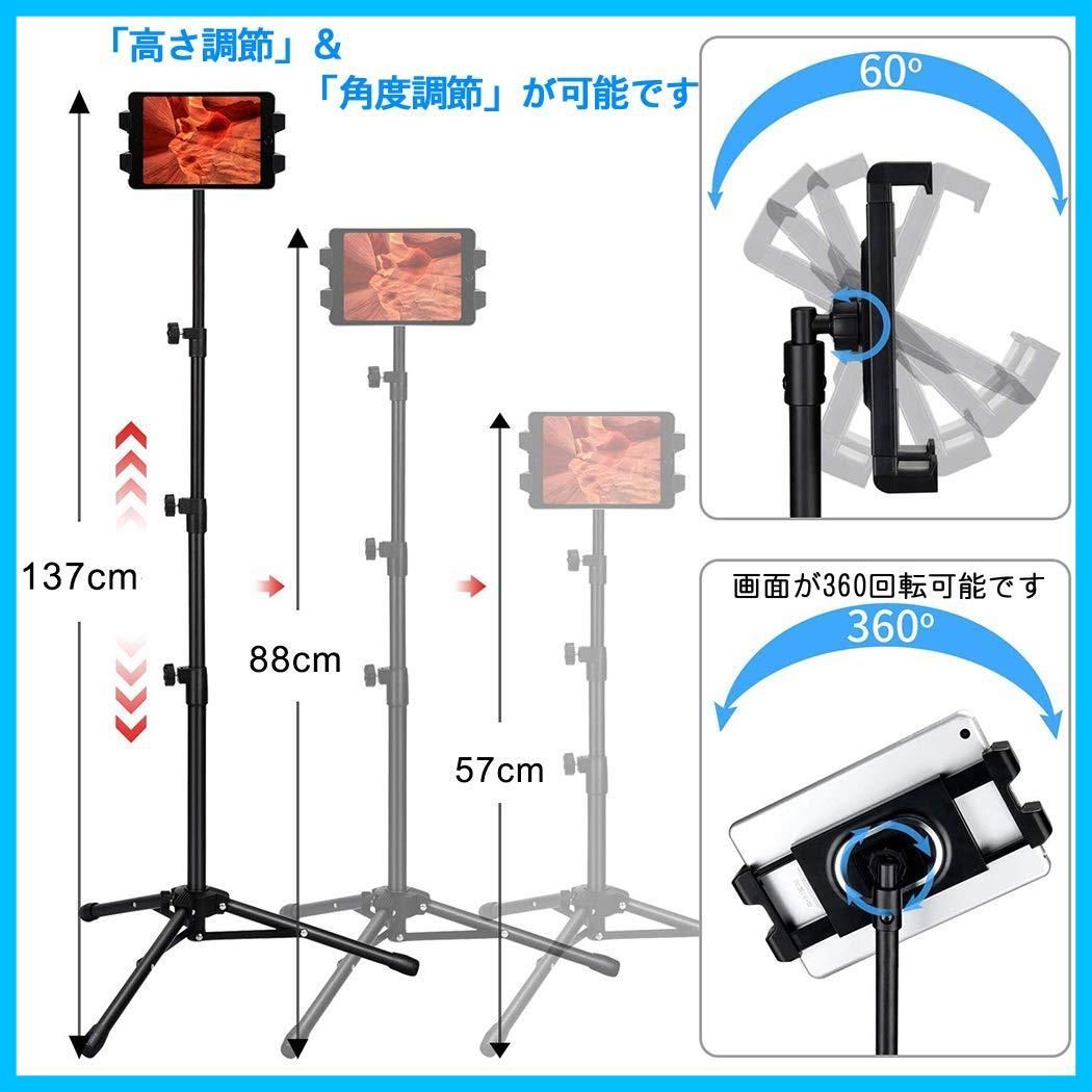 Susire タブレットスタンド 床置き 三脚 フロアスタンド 折りたたみ 回転 縦 12.9インチ以下 アイパッド対応 スマホスタンド 配信用 高さ調整 安定 ロング 持ち運び