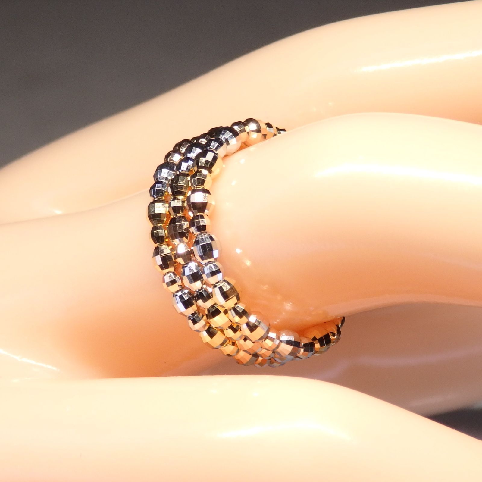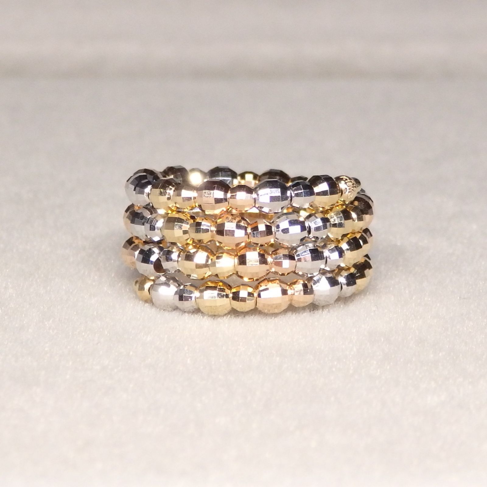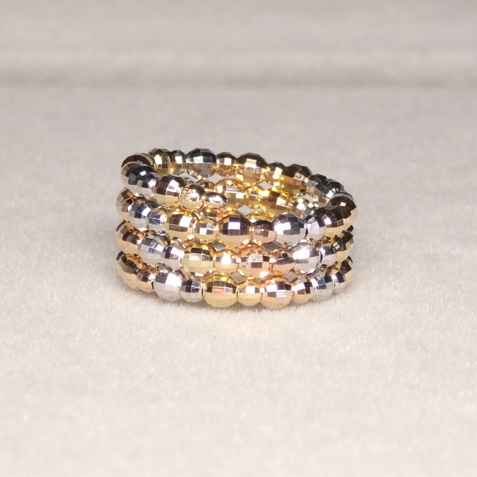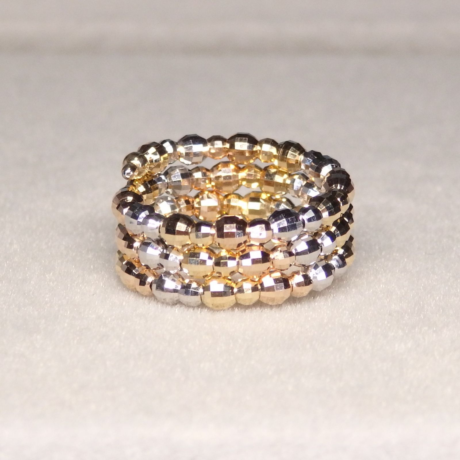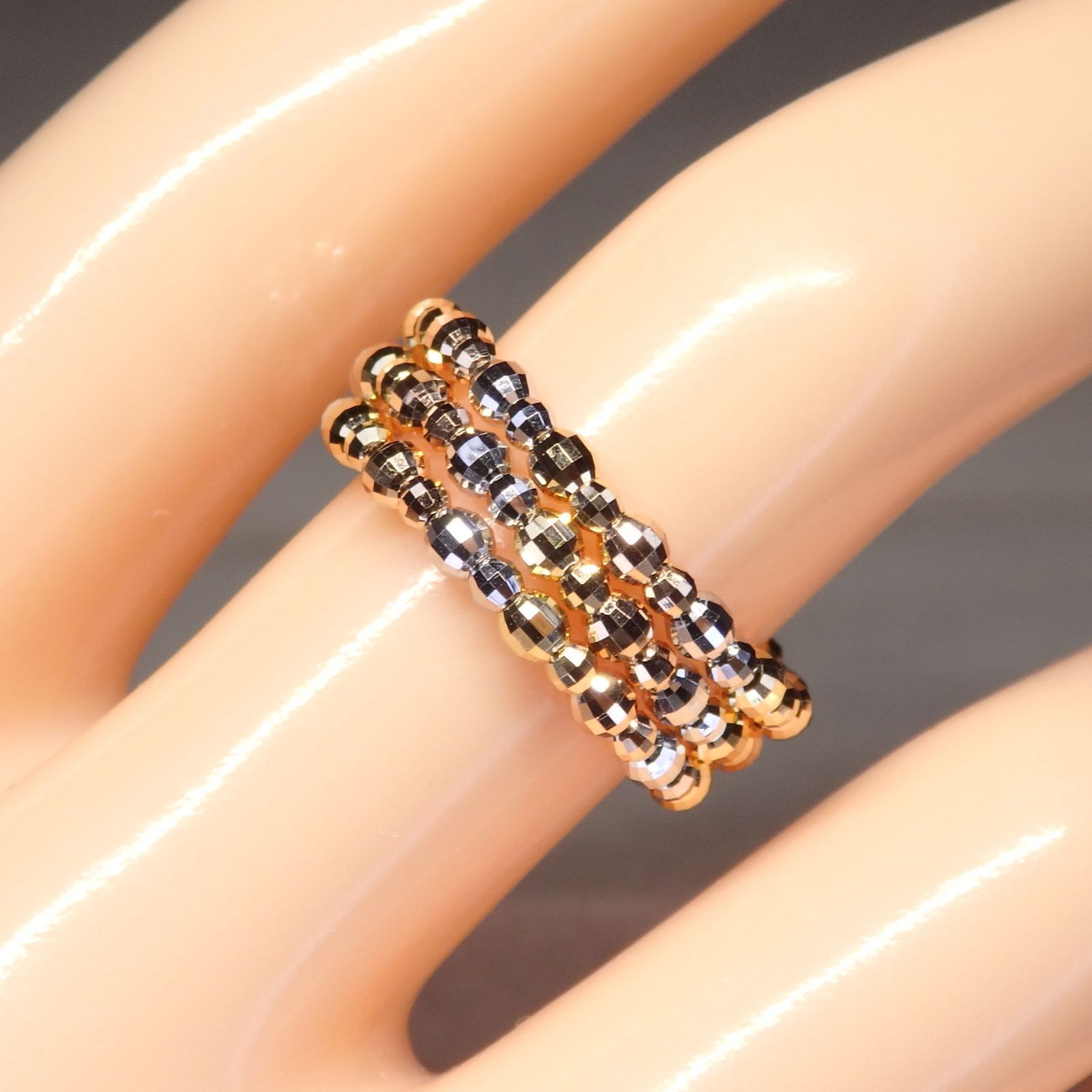 細かなカットが施されたカットボールのスパイラルリング。