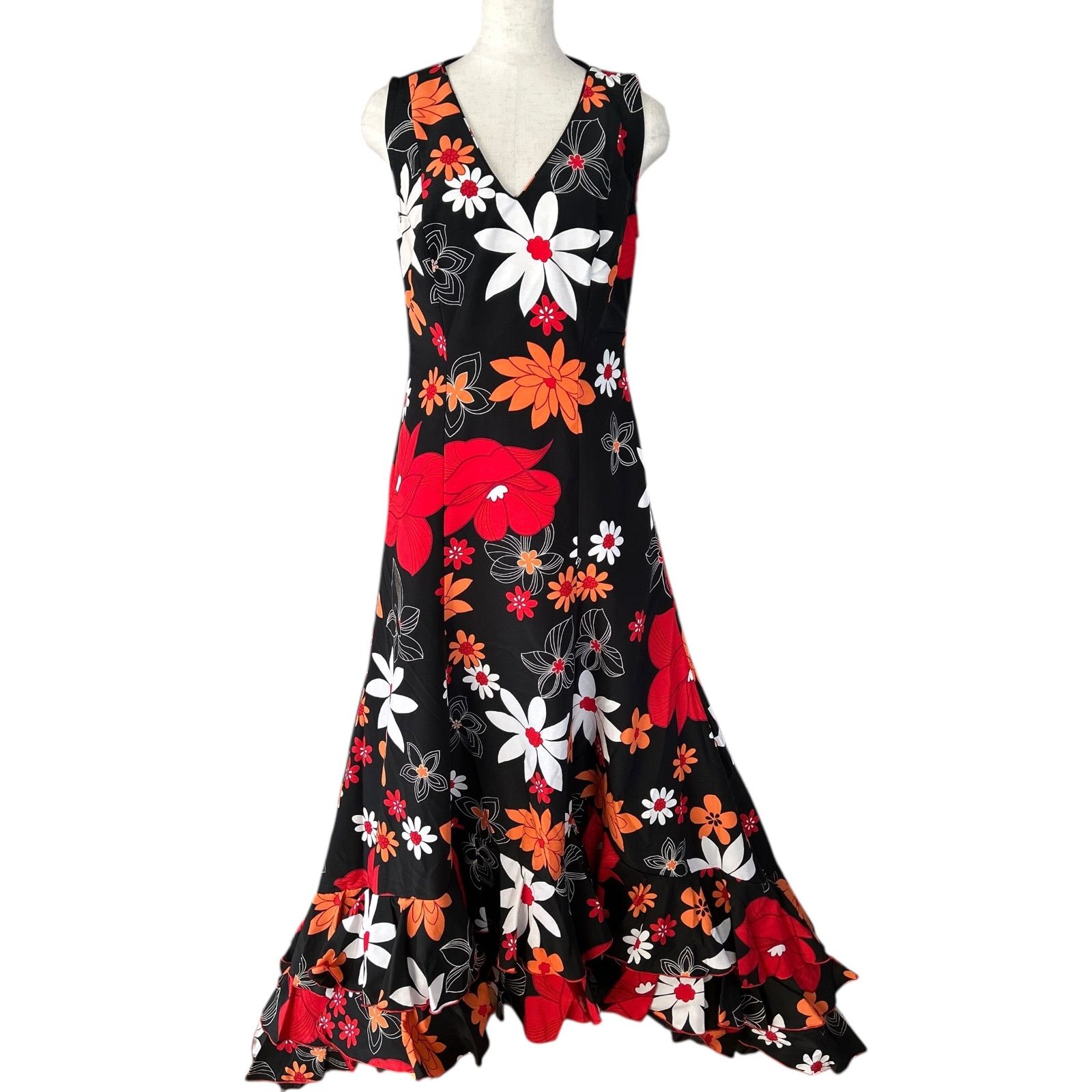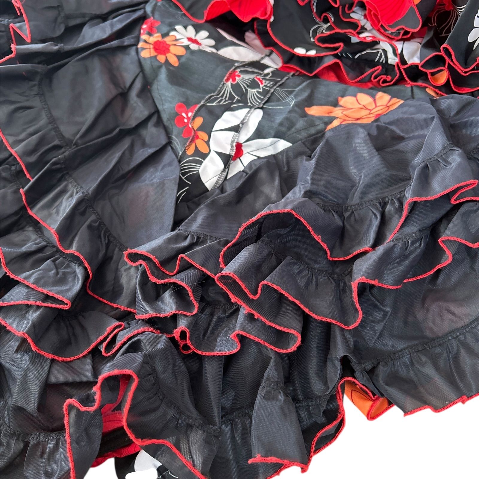 スペイン製 MOLINA モリーナ フラメンコ衣装 バタデコーラワンピースドレス ブラック 花柄 T-40