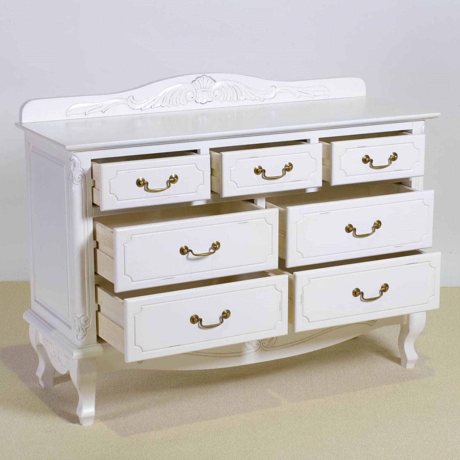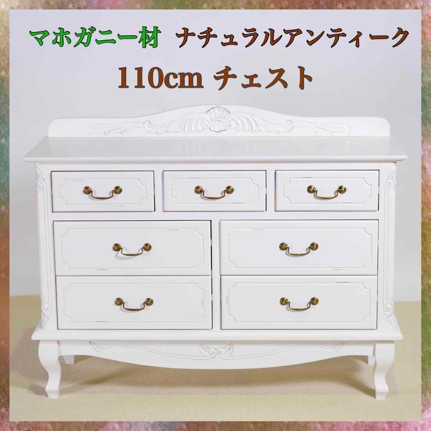 アンティーク調 チェスト 110m ホワイト 白 ナチュラルアンティーク セシレーヌ リビング収納 タンス たんす 衣類収納 マホガニー 天然木 ハワイ バリ アジア インテリア アジアン ビンテージ 収納 ホテル 家具