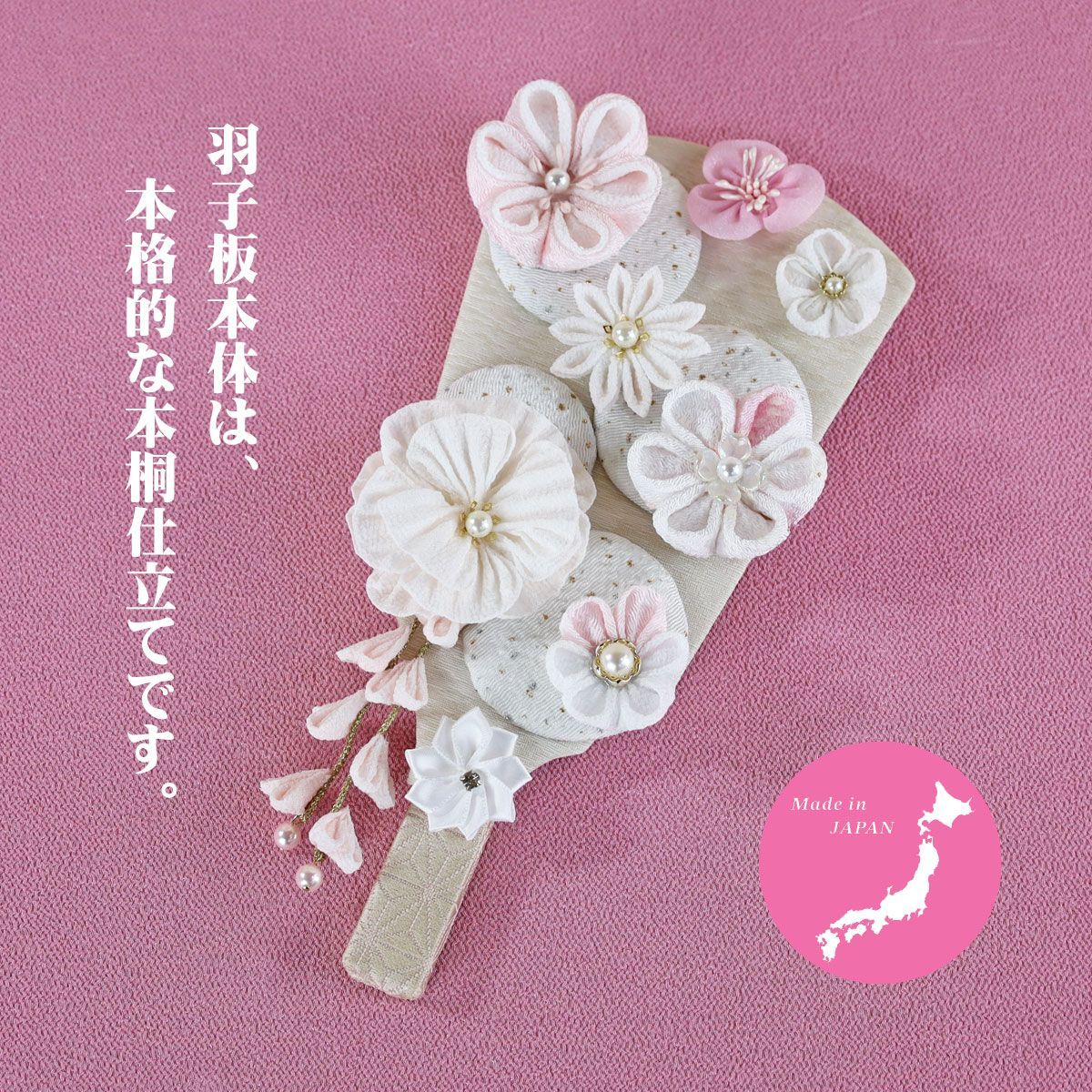 羽子板 初正月 ケース入り 7号 摘み細工 つまみ細工 羽子板飾り 陽葵 白 無垢 六角 アクリルケース 入り FUKUR8-174 ちりめん細工 日本製 コンパクト かわいい 可愛い インテリア おしゃれ 花羽子板 ミニサイズ お祝い