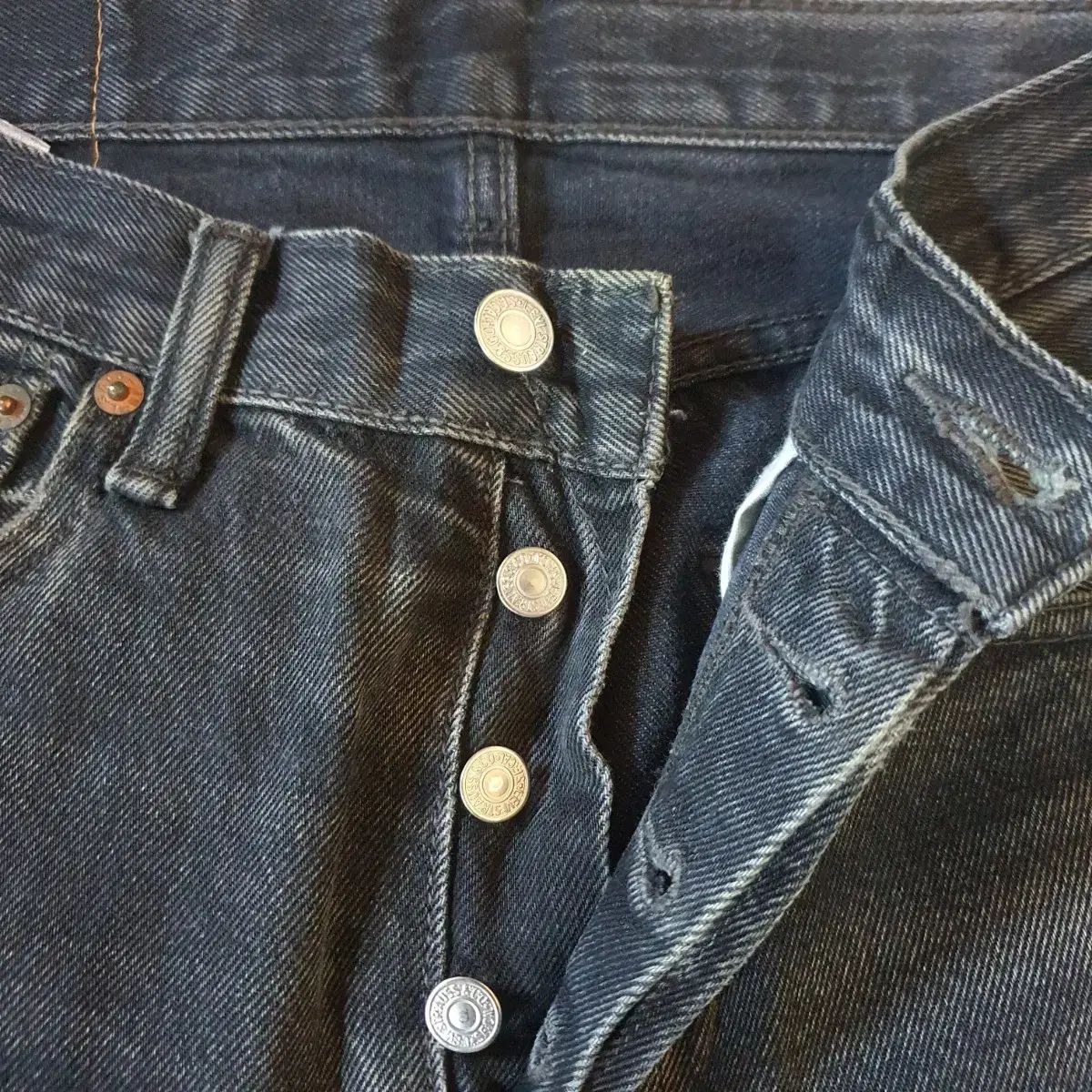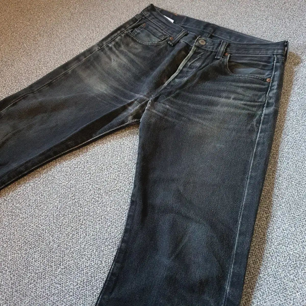ヨーロッパ版 リーバイス501 ブラック デニムです。全体的にウォッシュが自然に入り、ヴィンテージな風合いがあります。フィットはスタンダードなストレートフィットです。コメントなければそのまま安全決済していただければ大丈夫です!