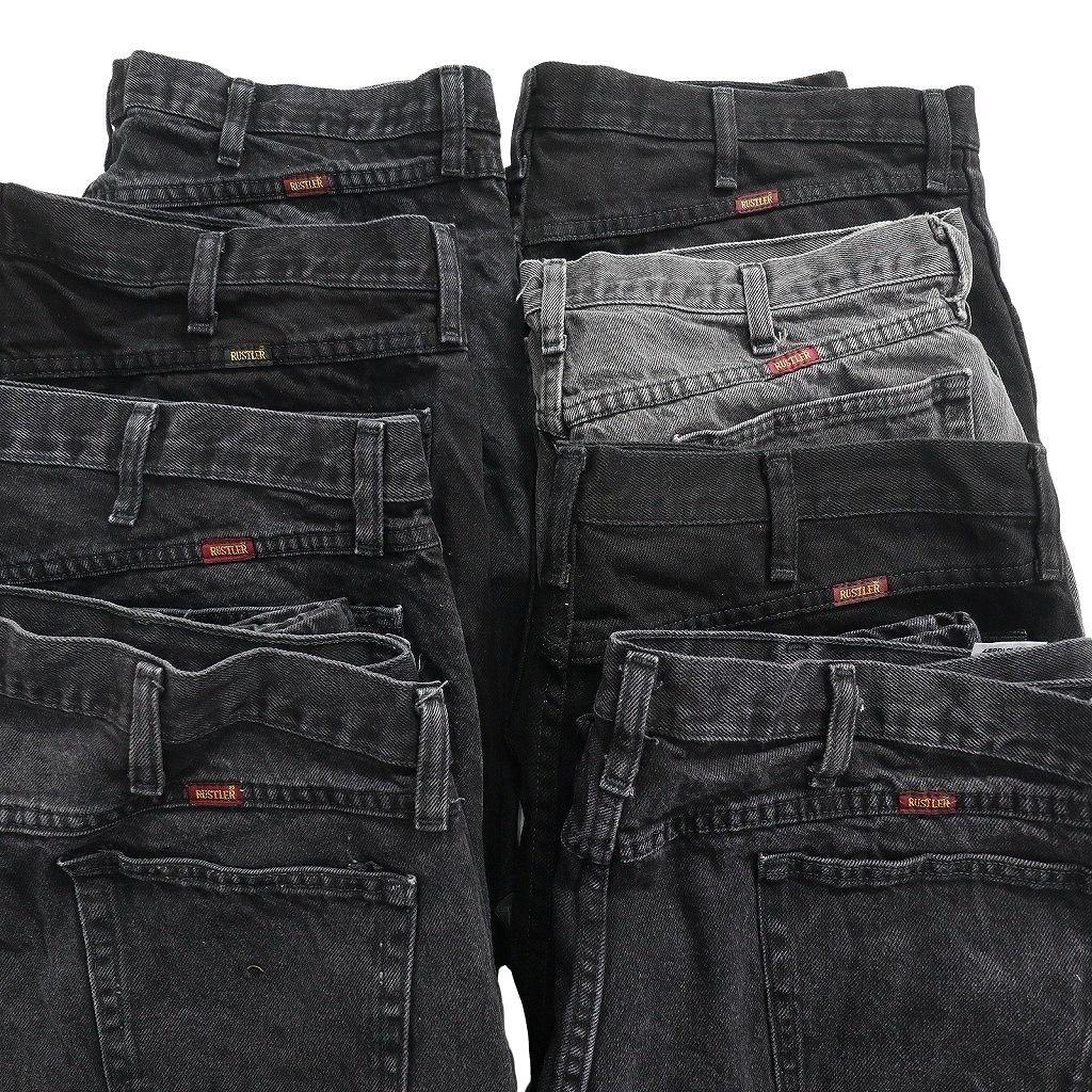 古着卸 まとめ売り RUSTLER ラスラー ブラックデニム パンツ 8枚セット メンズ 42 |40 フェード アメカジ 古着 ND0167