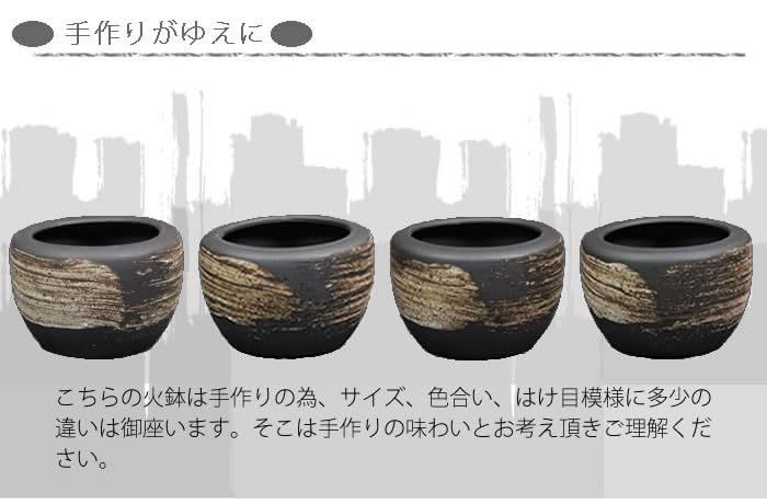 必ず灰を敷いてご利用下さいませ。炭を直接入れると鉢が割れます。また、炭は鉢に付かないようにご利用頂き、練炭のご利用はお控え下さいませ。