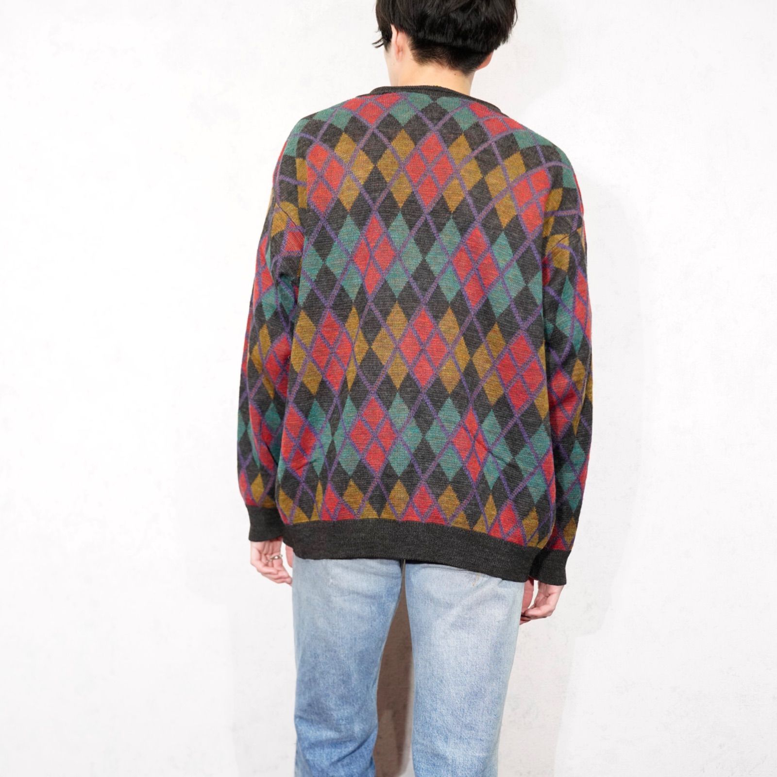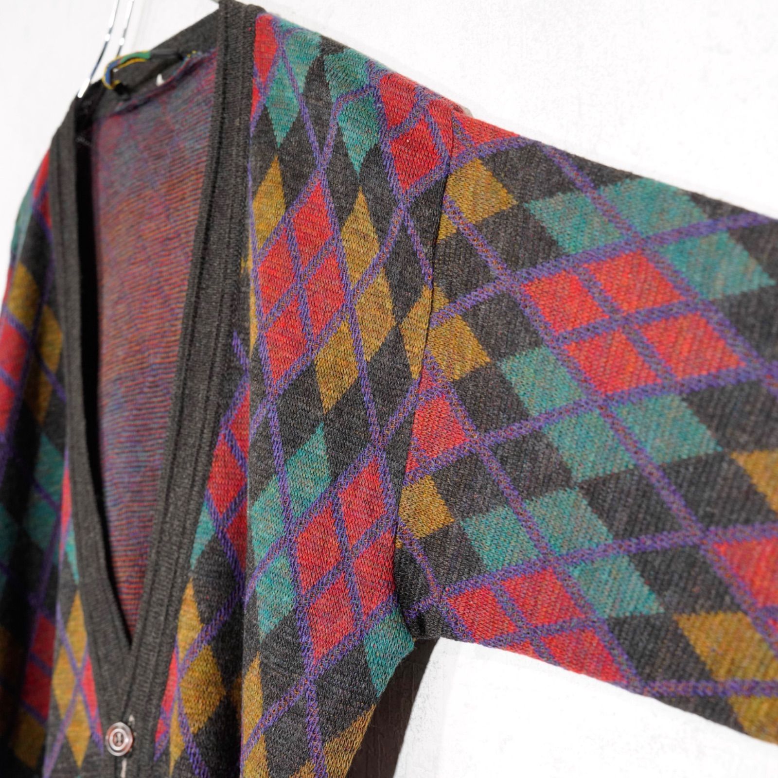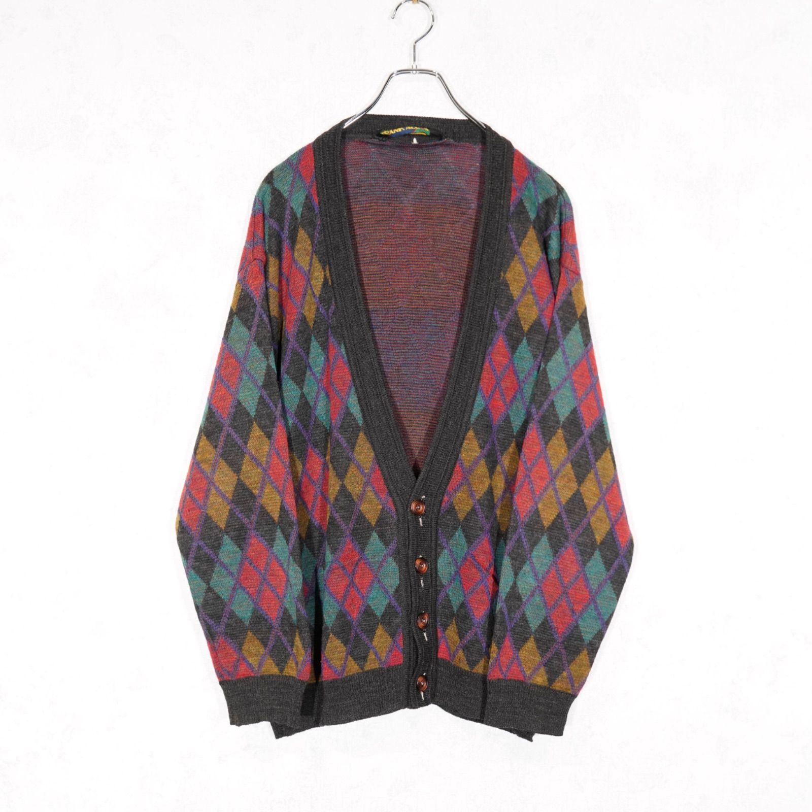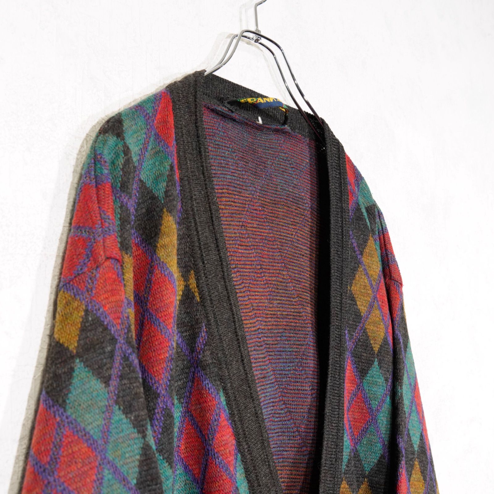 EU VINTAGE FRANK ALEXS DIAMOND PATTERNED DESIGN KNIT CARDIGAN/ヨーロッパ新品ダイアモンド柄デザインニットカーディガン