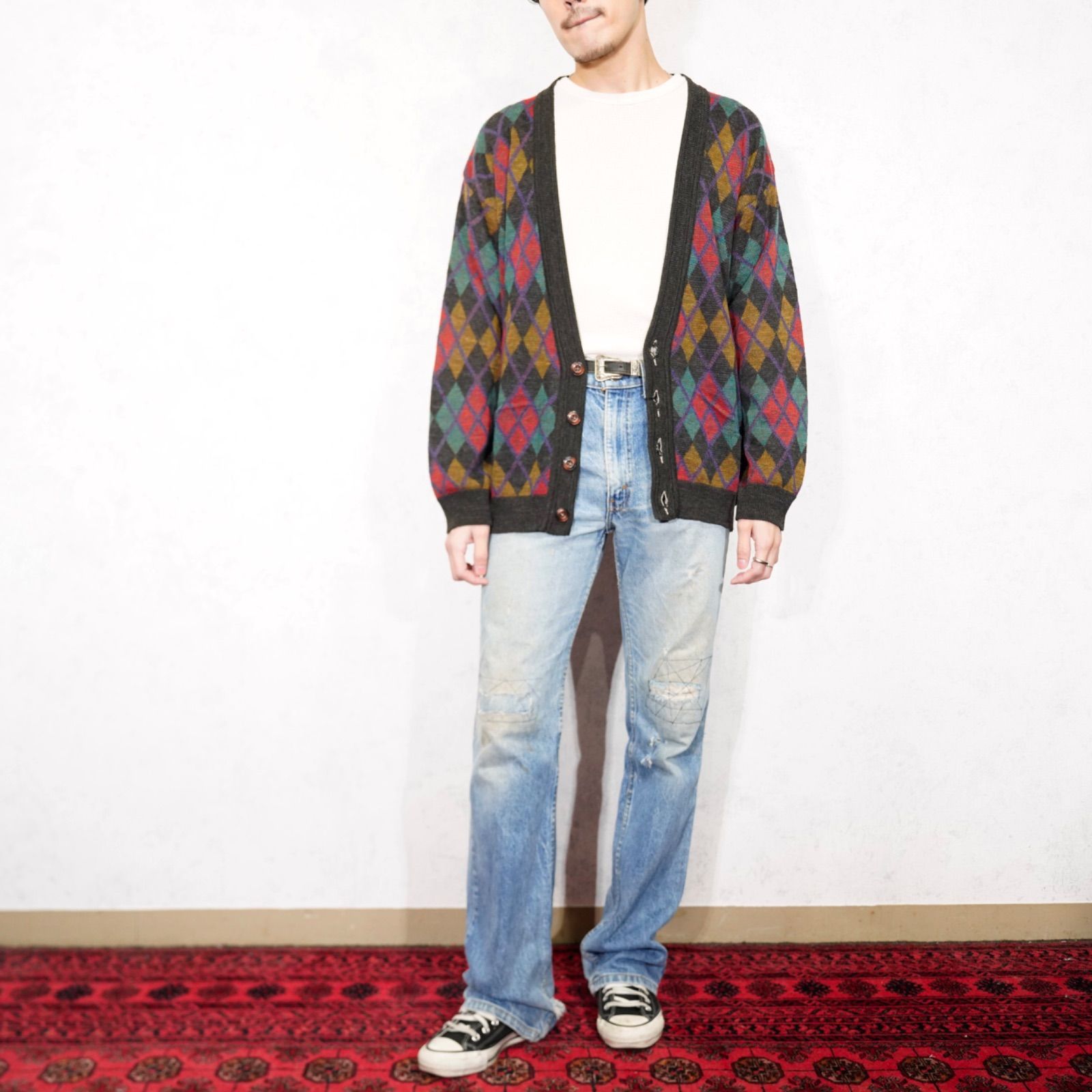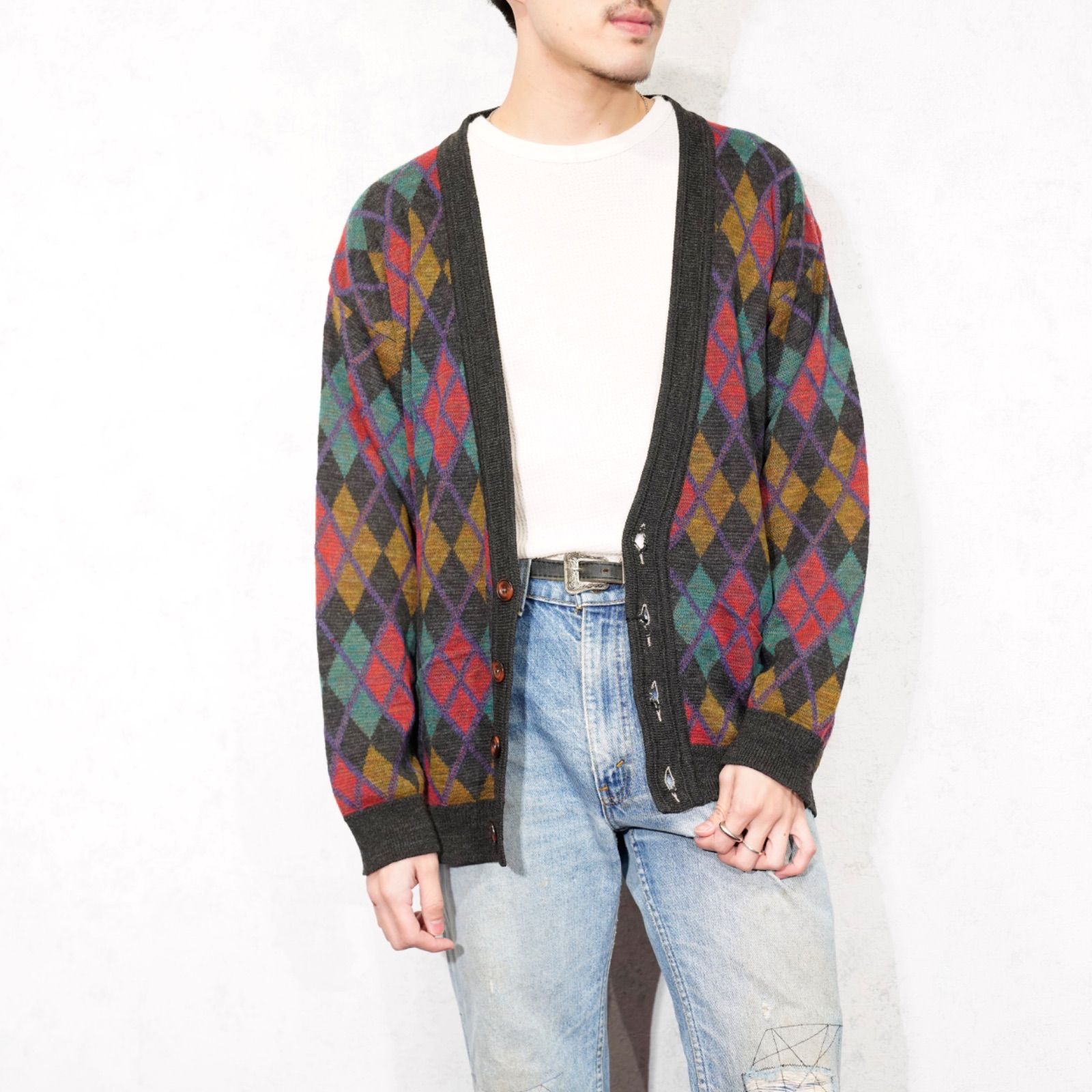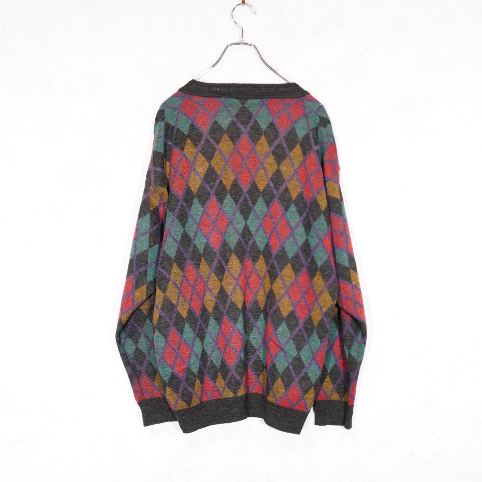 EU VINTAGE FRANK ALEXS DIAMOND PATTERNED DESIGN KNIT CARDIGAN/ヨーロッパ新品ダイアモンド柄デザインニットカーディガン
