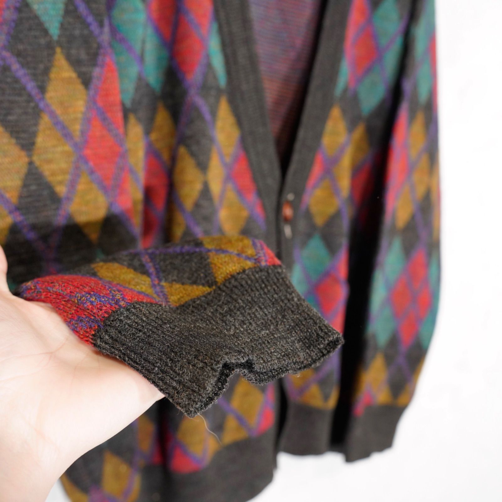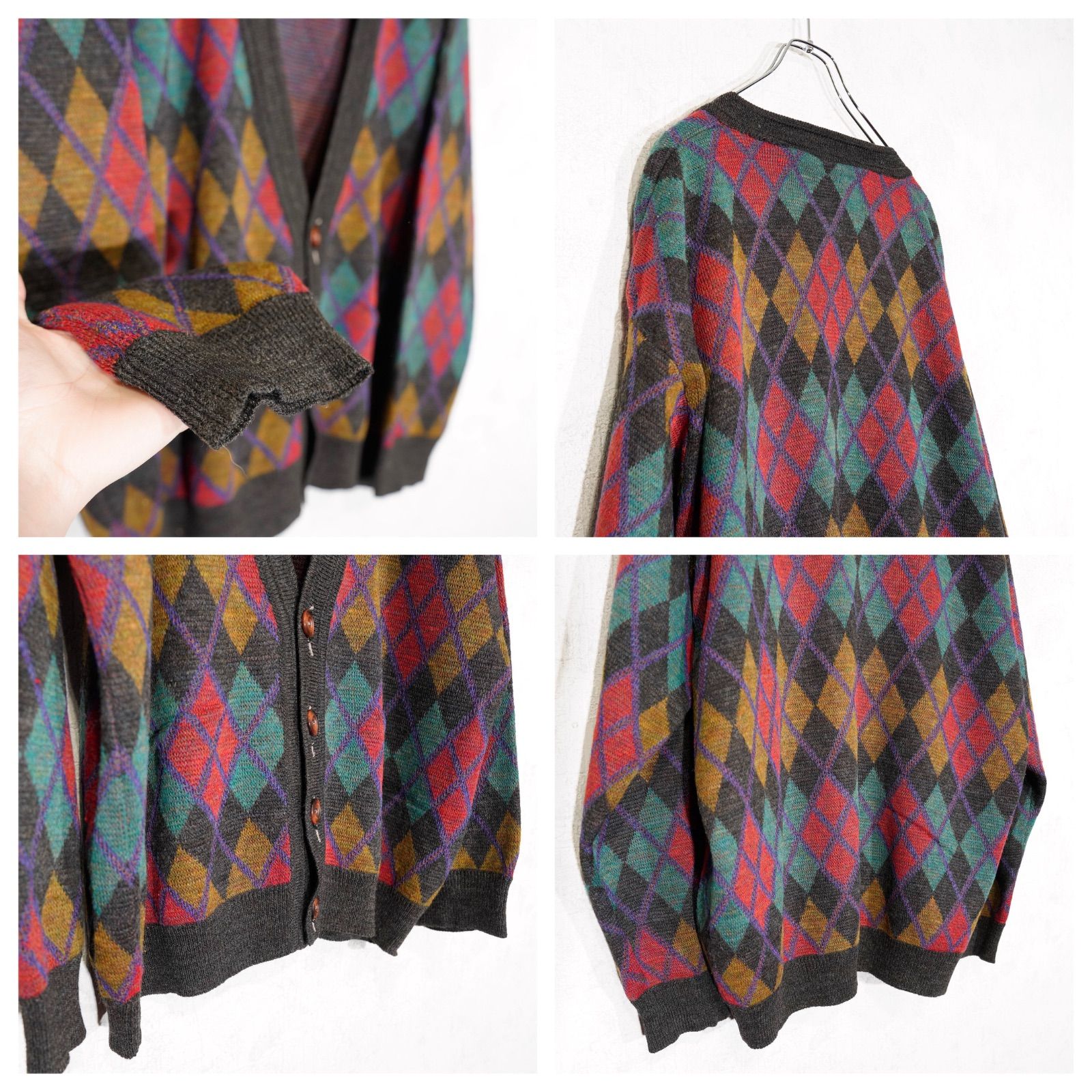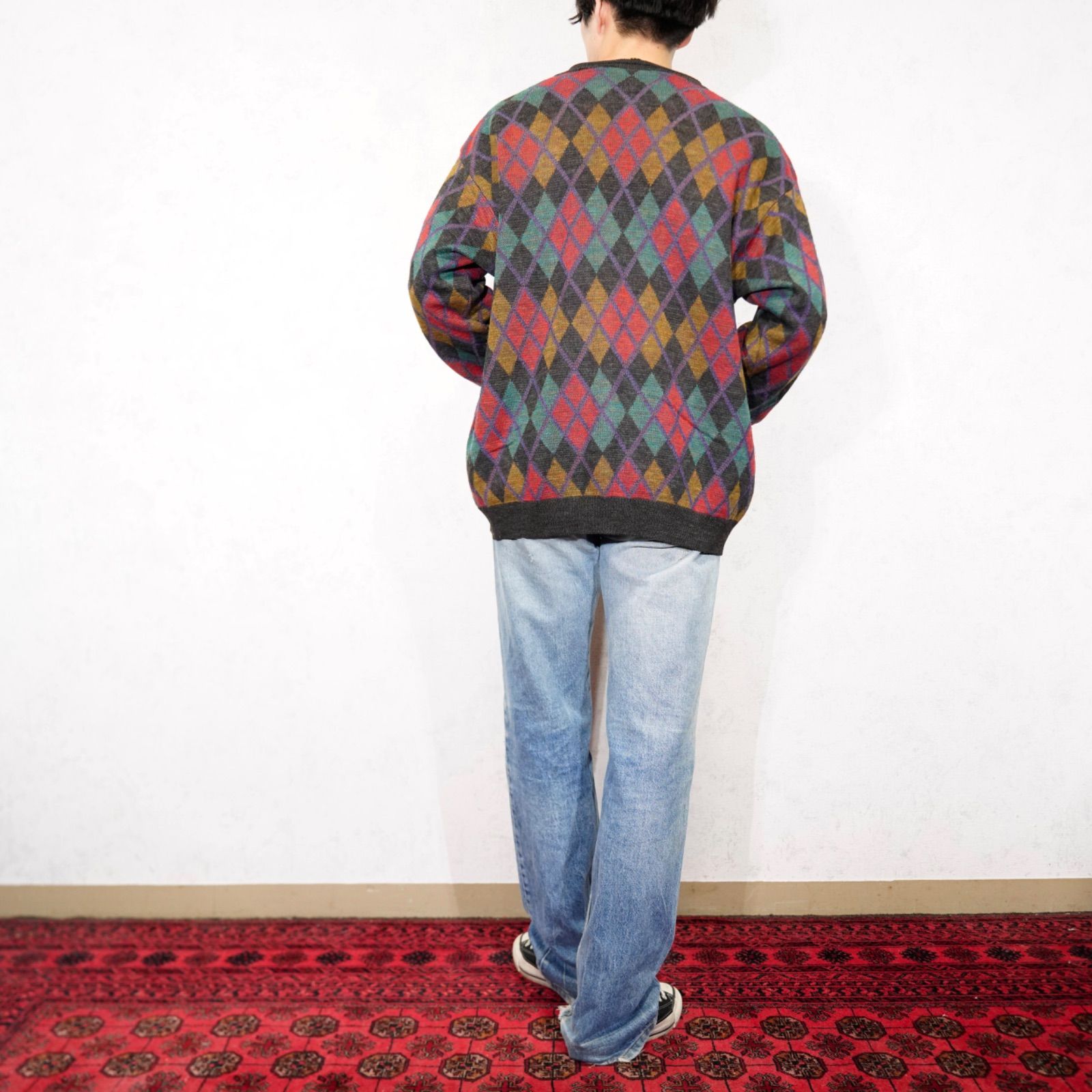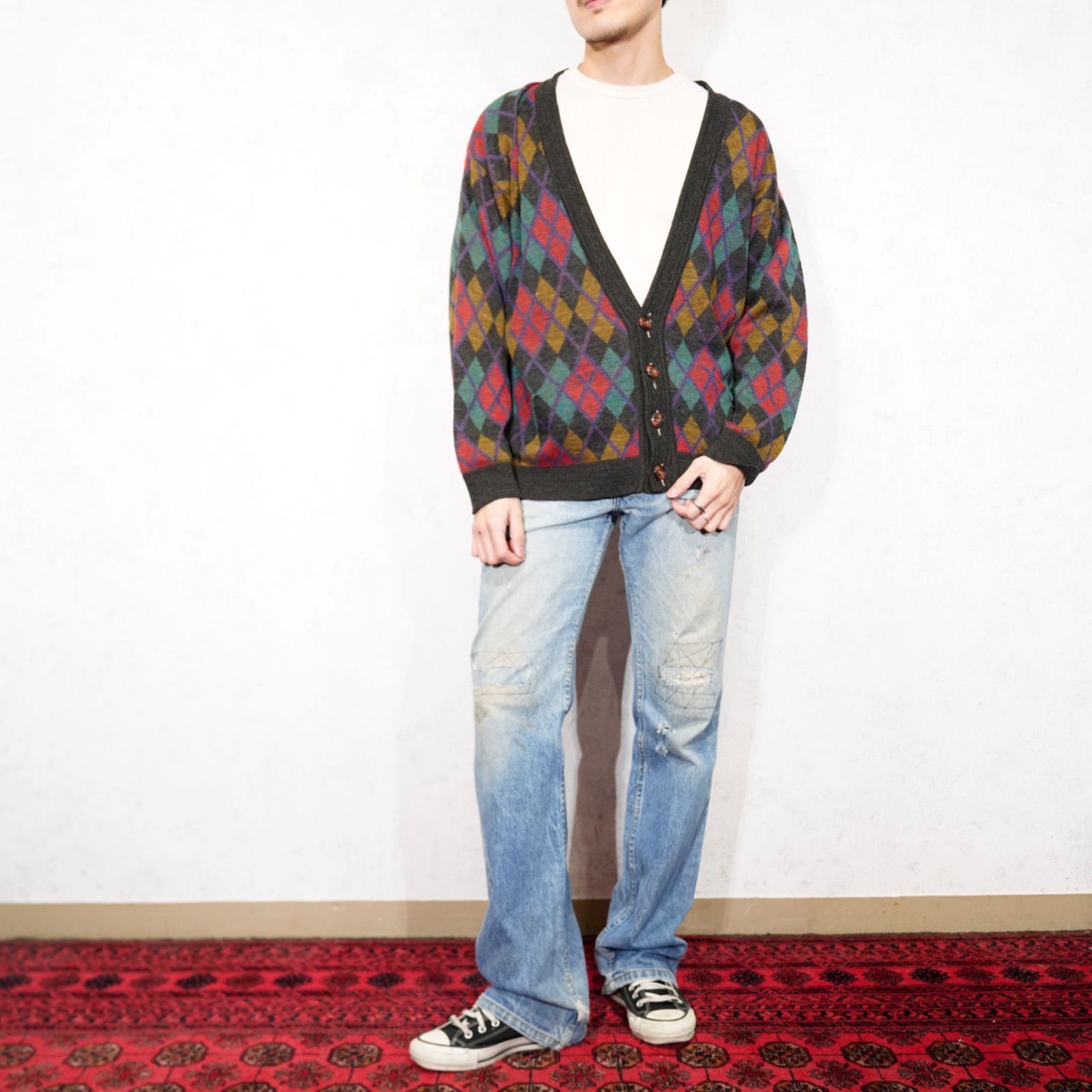 EU VINTAGE FRANK ALEXS DIAMOND PATTERNED DESIGN KNIT CARDIGAN/ヨーロッパ新品ダイアモンド柄デザインニットカーディガン