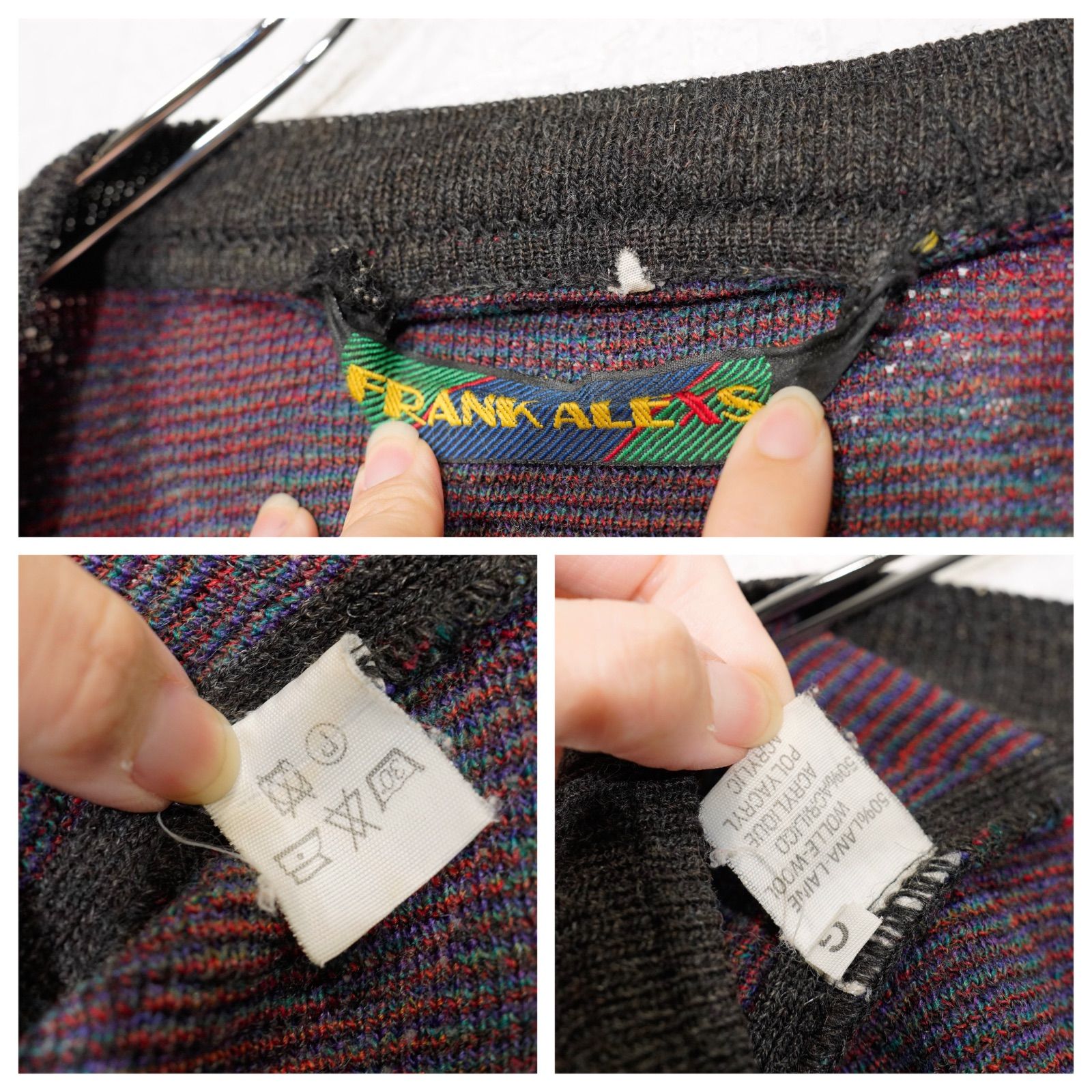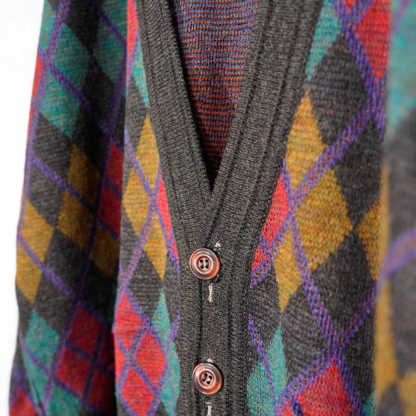 EU VINTAGE FRANK ALEXS DIAMOND PATTERNED DESIGN KNIT CARDIGAN|ヨーロッパ古着ダイアモンド柄デザインニットカーディガン