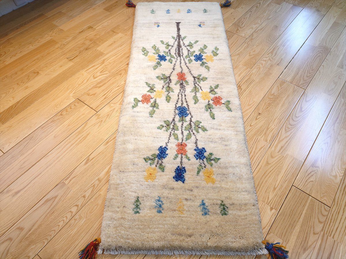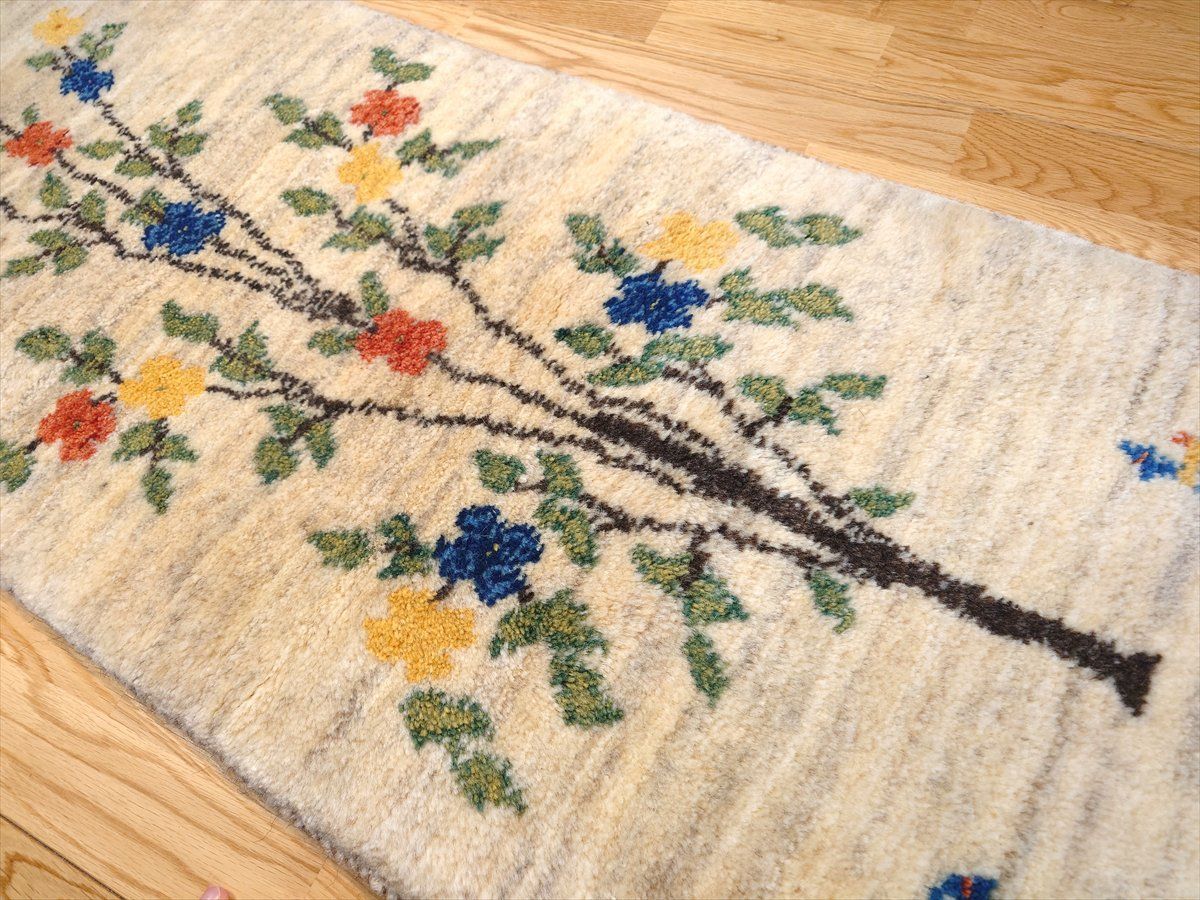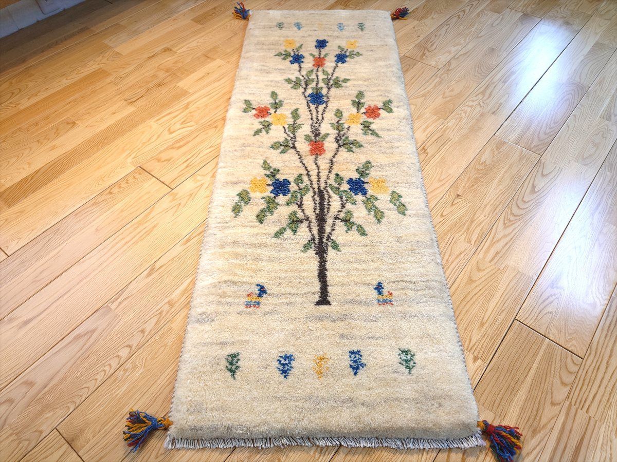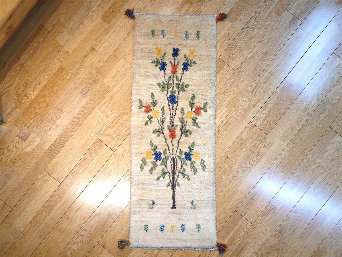 ペルシャ ギャッベ ランナー中 ラグ 140×52㎝ 生命の木 ベージュ Gray RJ15062
