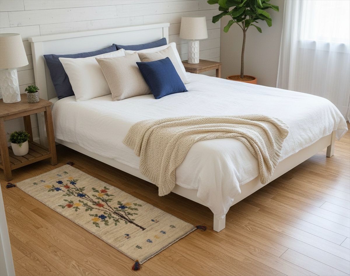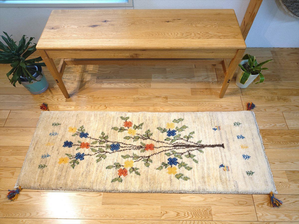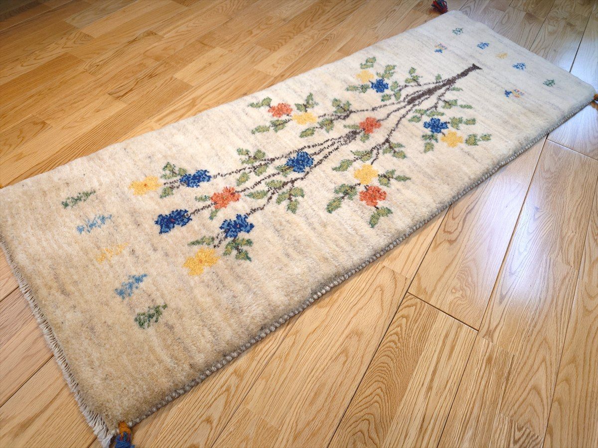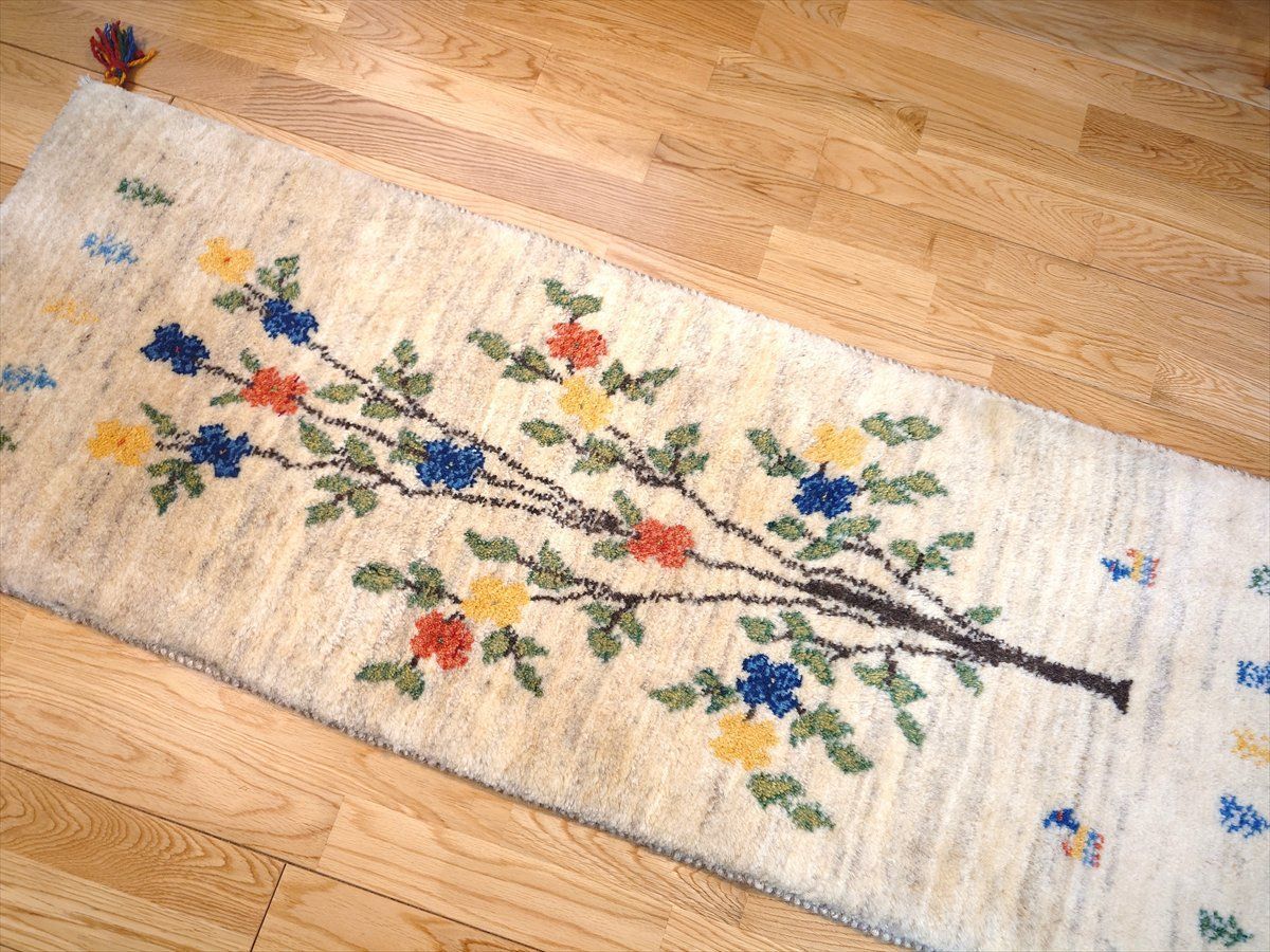 ペルシャ ギャッベ ランナー中 ラグ 140×52㎝ 生命の木 ベージュ Gray RJ15062