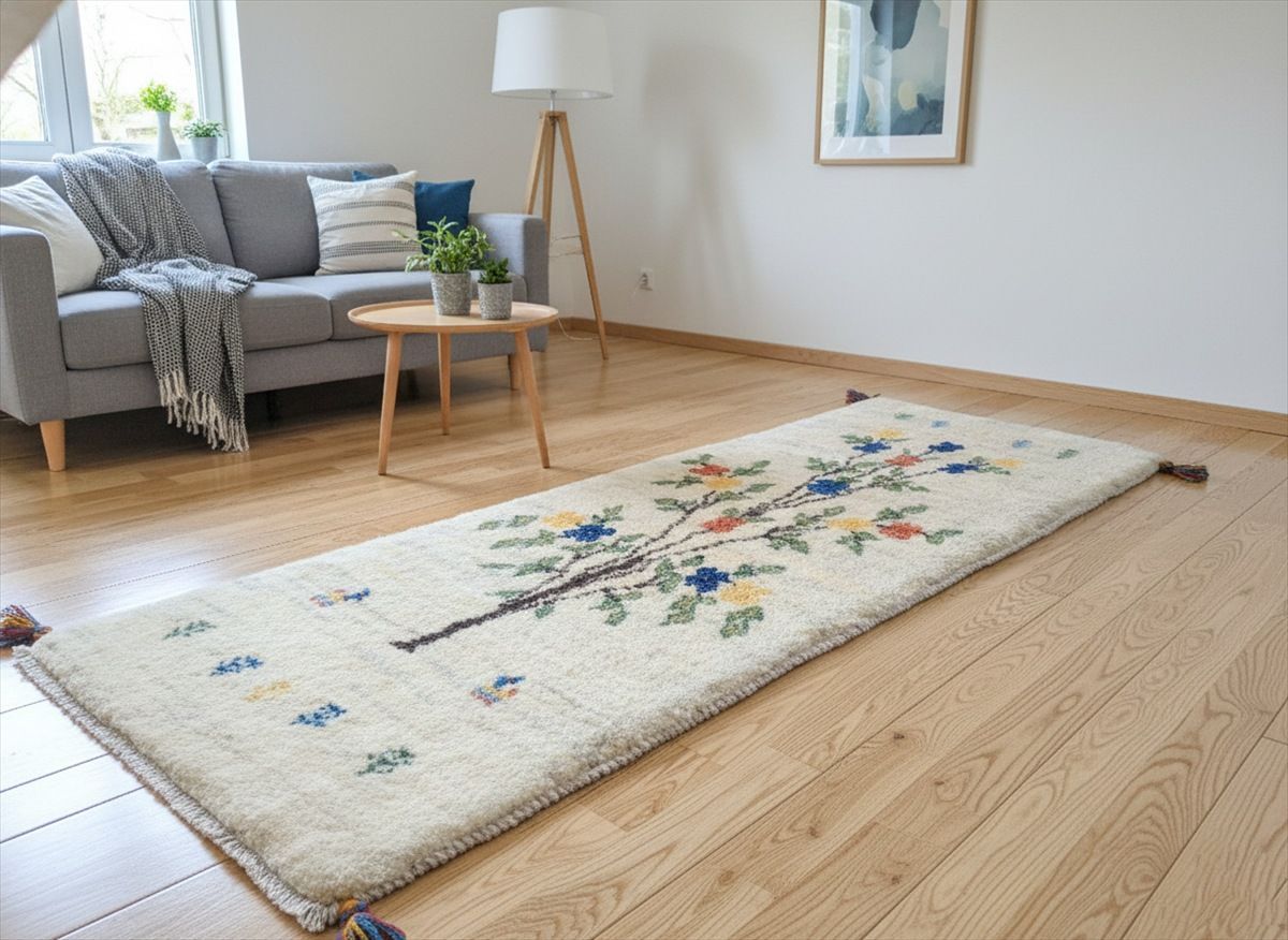 細長いランナーサイズは、廊下、ベッドサイド、キッチン、または窓辺の飾り棚の下など、**「あと少し彩りが欲しい」**場所に最適です。