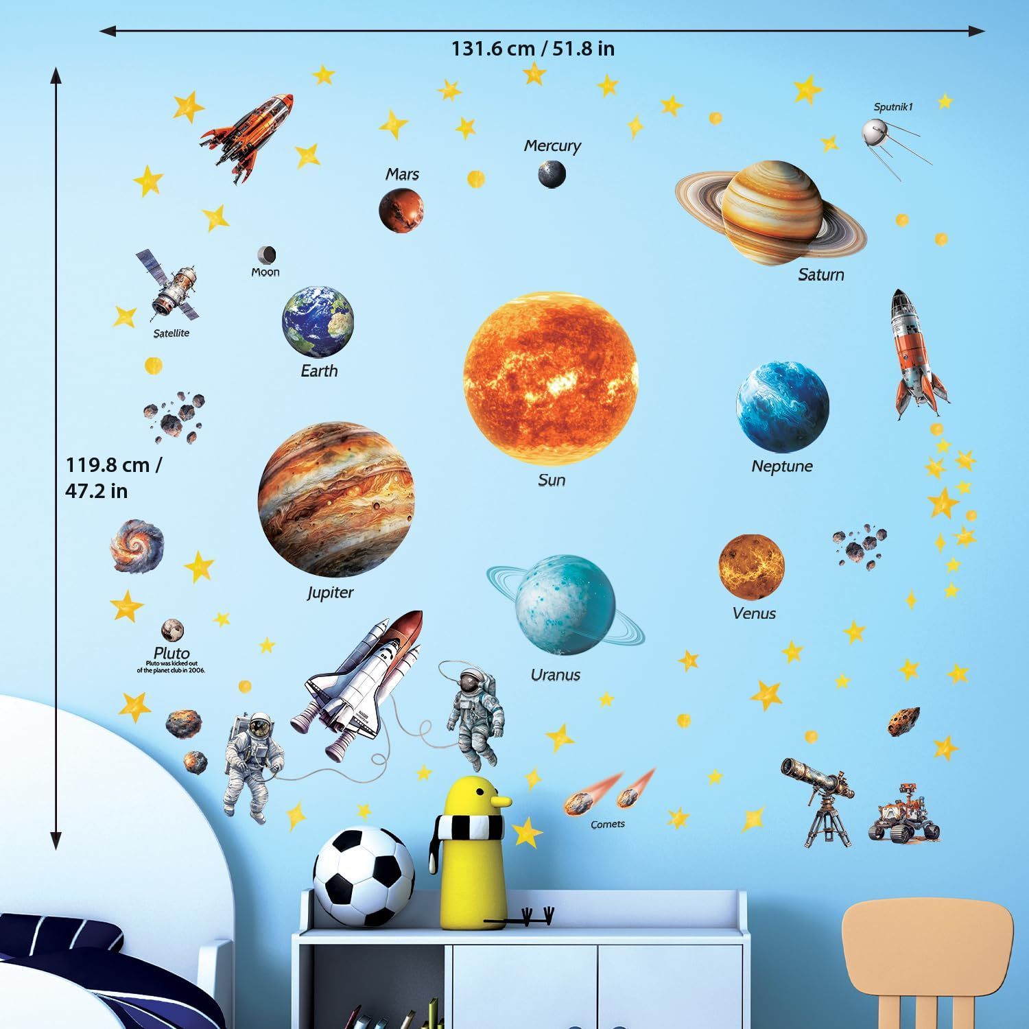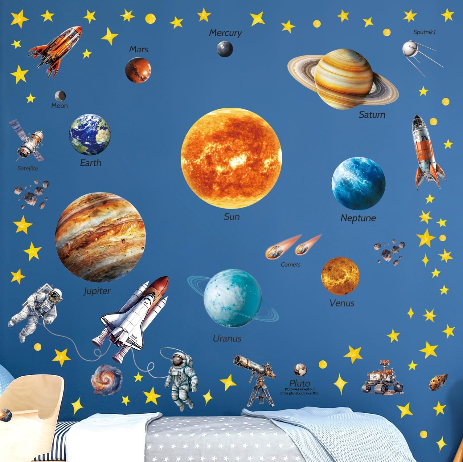 寝室用 ビニール デコレーション バスルーム 保育園用 こども 女の子 男の子 シール シール ティーン ウォールアート 壁転写 用 DIY キッズ 子供部屋 保育園 幼稚園 デコ ステッカー ウォールペーパー ウォール 太陽系 DS12-8077