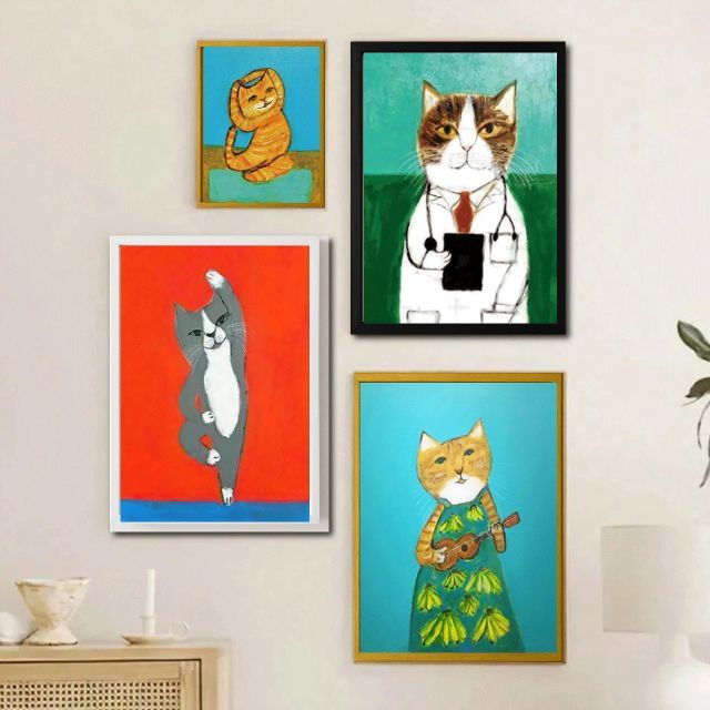 種類170 22 A1相当 60×80cm ゴールド ネコ アートポスター 22デザイン 4サイズ フレーム付 アートパネル アートボード ポスター 玄関 アートプリント 絵 絵画 インテリア 額付き 完成品 キャンバス 猫 ペット アニマル 動物 プレゼ