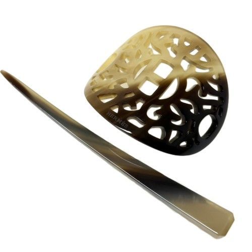 HERMES エルメス ロカイユ かんざし 052750FC バッファローホーン ブラウン ベージュ ブランド小物 ヘア 小物 髪留め 髪飾り 和装 バレッタ ヘアクリップ べっ甲 水牛の角 81279