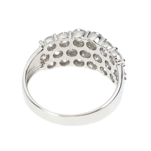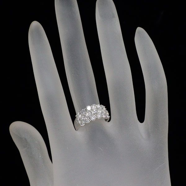 トータル2.03ctのダイヤモンドを贅沢に使用した、豪華なプラチナリング。ダイヤモンドは、一部表面に微細な傷が見られるものの、煌めきの瑞々しいピースがセレクトされています。一つ一つ丁寧にパヴェセッティングされた高級感のある一品。ワンランク上のおしゃれを演出してくれる、ラグジュアリーなダイヤモンドジュエリーをお楽しみください。
