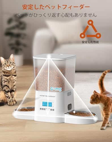 HONEYGUARDIAN 自動給餌器 猫 犬 2匹 タイマー式 3.5L容量 定時定量 1日6食 猫 餌 自動 2個のステンレスボウル付き 猫 中小型犬用 自動餌遣り機 複数の鮮度保持 水洗い 音声録音 手動給餌 緊急電源 詰まり防止センサー 日