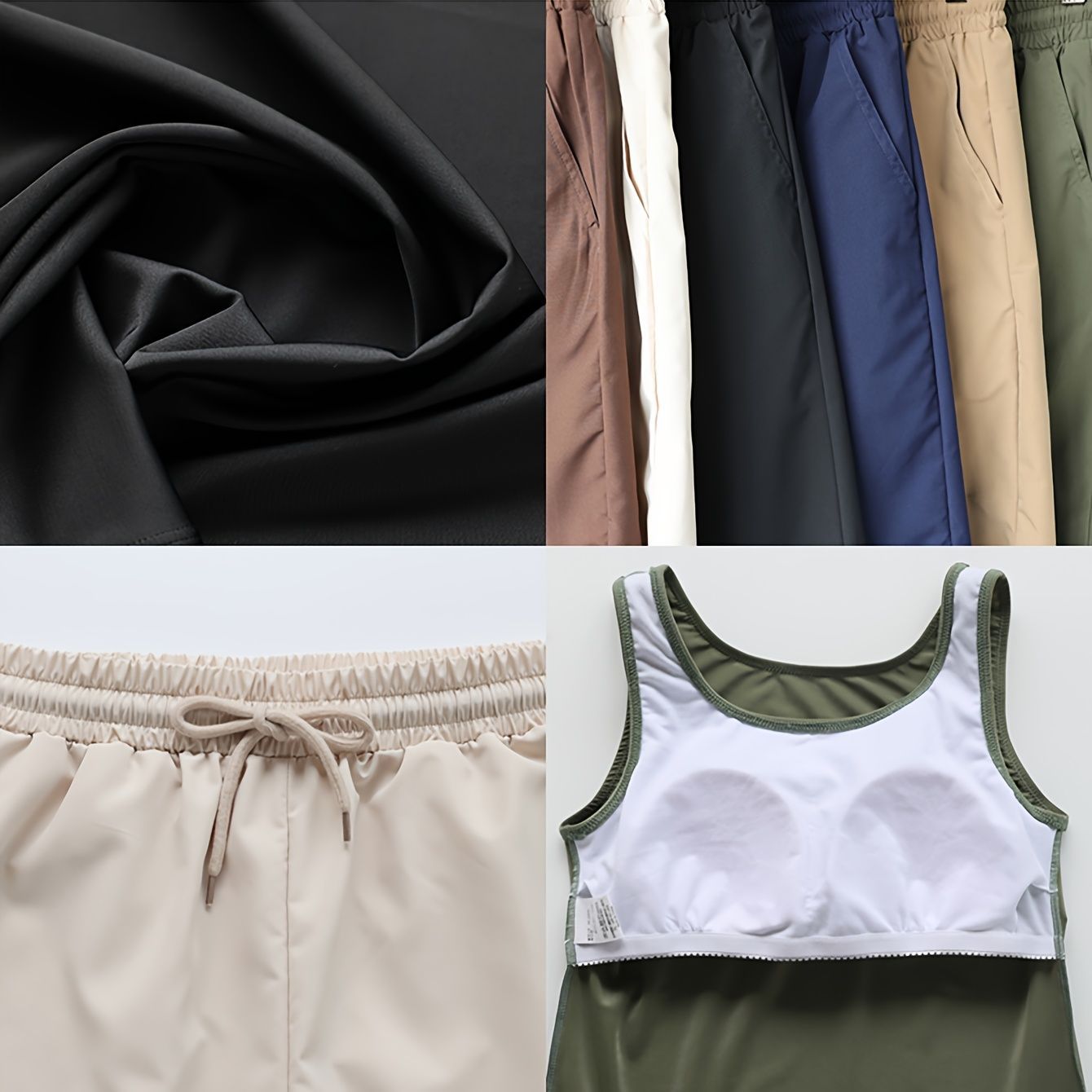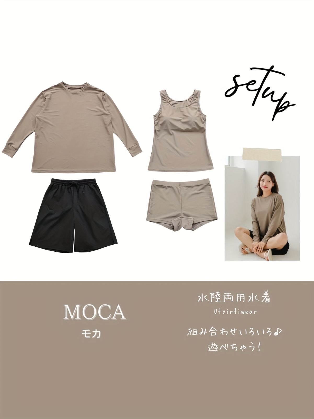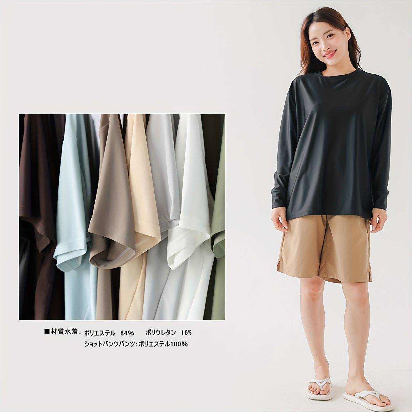 ラッシュガード トレンディ レディース 水着セット 女性用 カジュアルビキニ 4点組水着 4点セット セット販売 日焼け防止 おしゃれ シンプル 無地 プール スイミング 川遊び 海 夏のアウトドア 夏のバカンス ダークカーキ