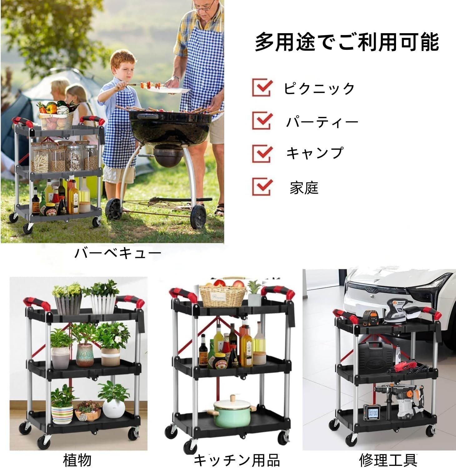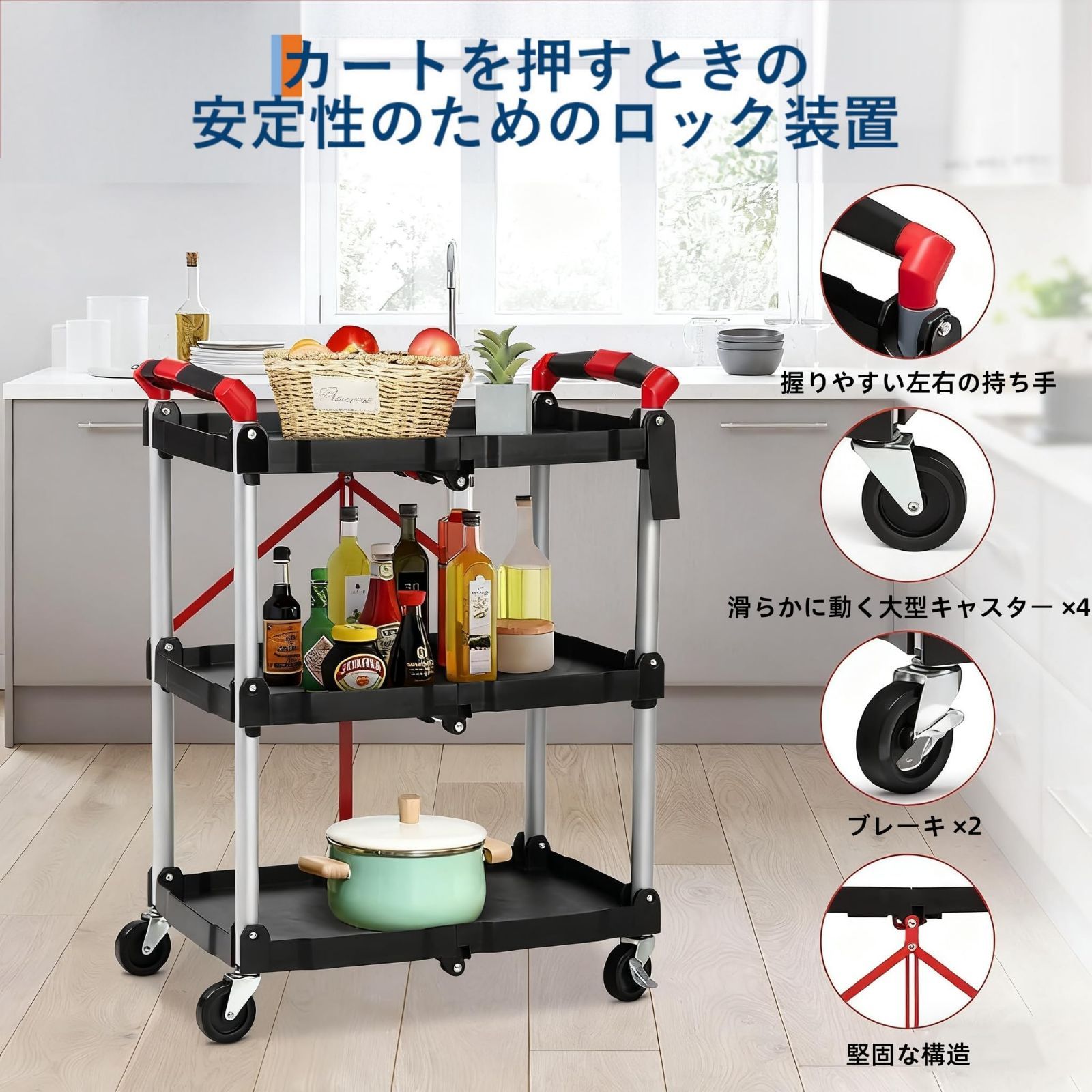 ツールワゴン ツールカート 3段 折りたたみ 工具ワゴン キャスター付き 工具移動台車 工具収納 総耐荷重75 kg 家庭 オフィス ホテル 倉庫用 グレー