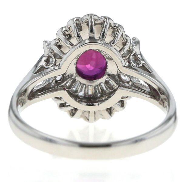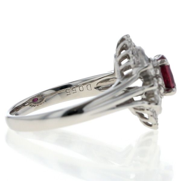 Pt900 リング ルビー 0.76ct ダイヤモンド 0.55ct オーバル 取り巻き 2重 マーキス スカラップ 指輪 10.5号 仕上済 zz