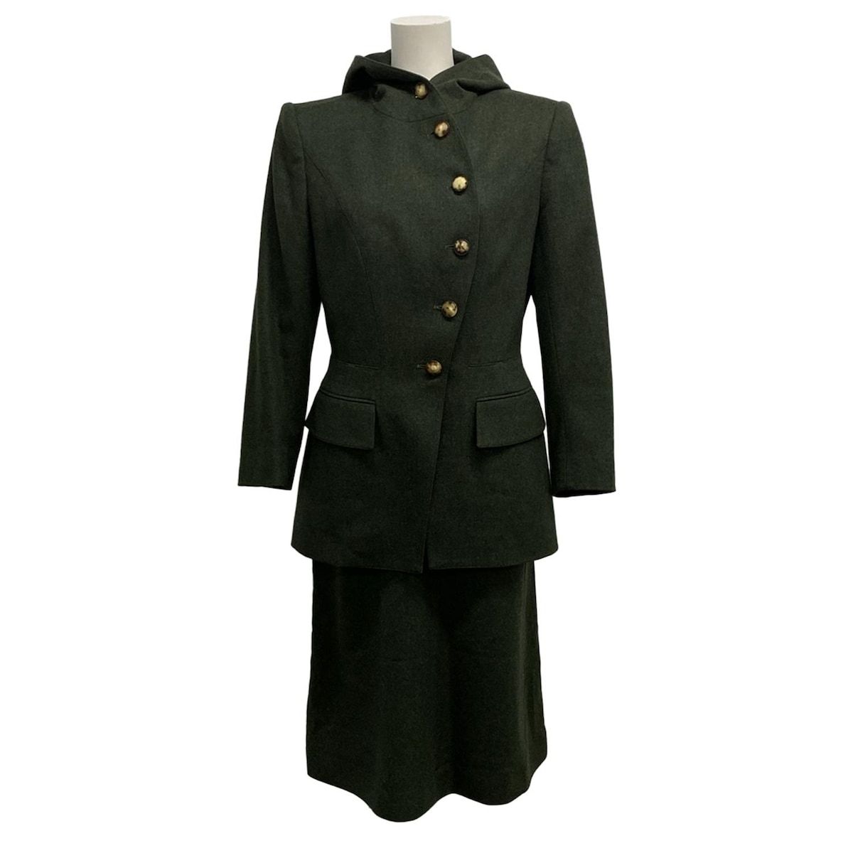 HERMES エルメス スカートセットアップ サイズ38 M レディース - ダークグリーン ウール カシミヤ