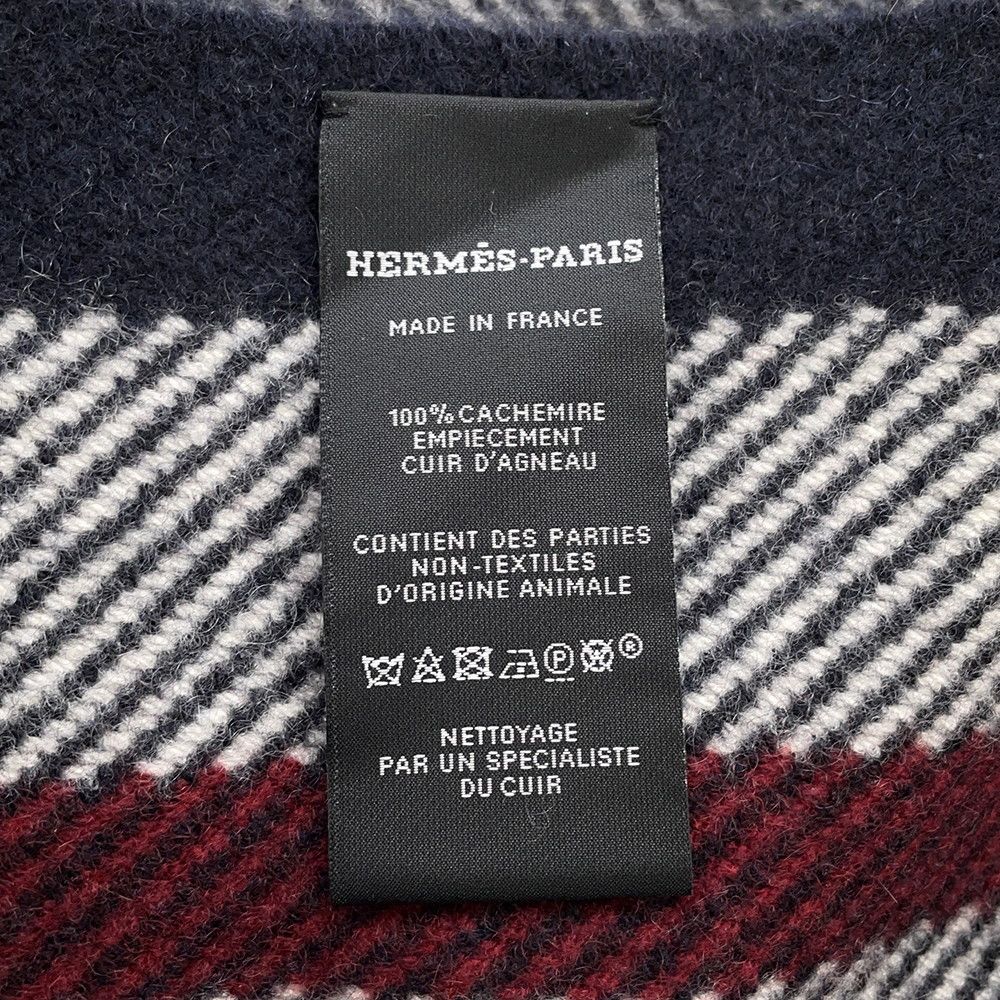 エルメス マフラー タータンポケット キュイール アップリケ カシミヤ HERMES ストール