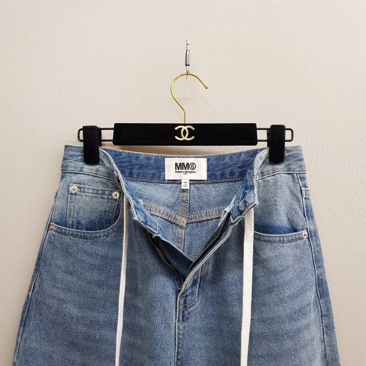 MM6 Maison Margiela 特有のユニークな感性が込められたペイントウォッシュワイドデニムパンツです。イタリアで製作された高級デニムで、しっかり素材のコットン 100% 生地が使用されており、着用時に形をよく保ち、丈夫な耐久性を提供します。