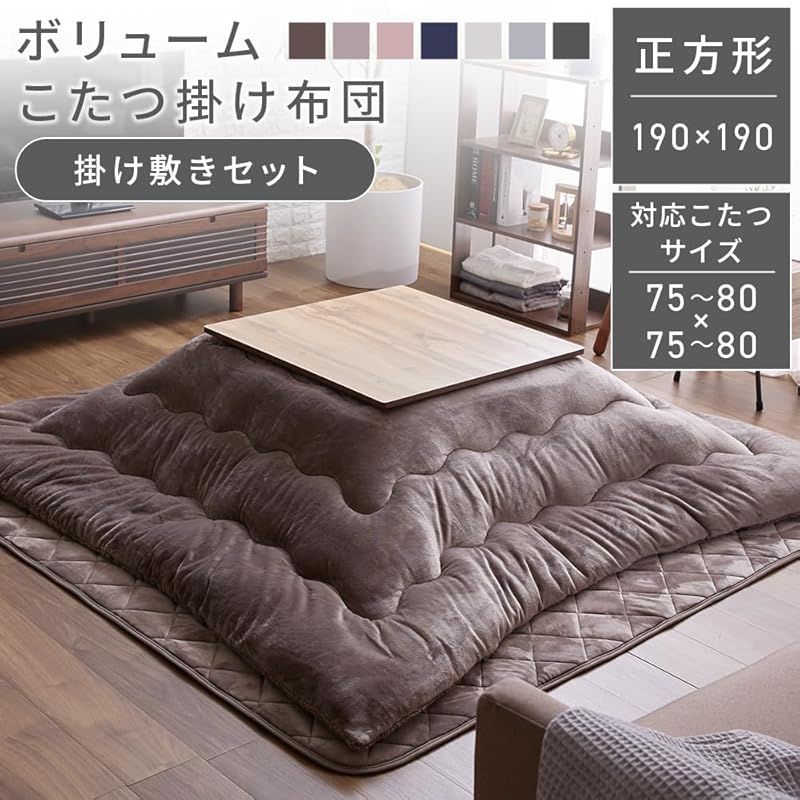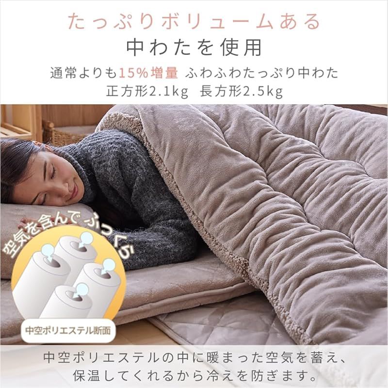 アイリスプラザ ボリュームこたつ布団セット 185×185cm あたたかさを逃さず優しい掛け心地 使って驚くふっくらあたたかボリューム掛け布団 敷き布団のこたつ布団セット モカブラウン