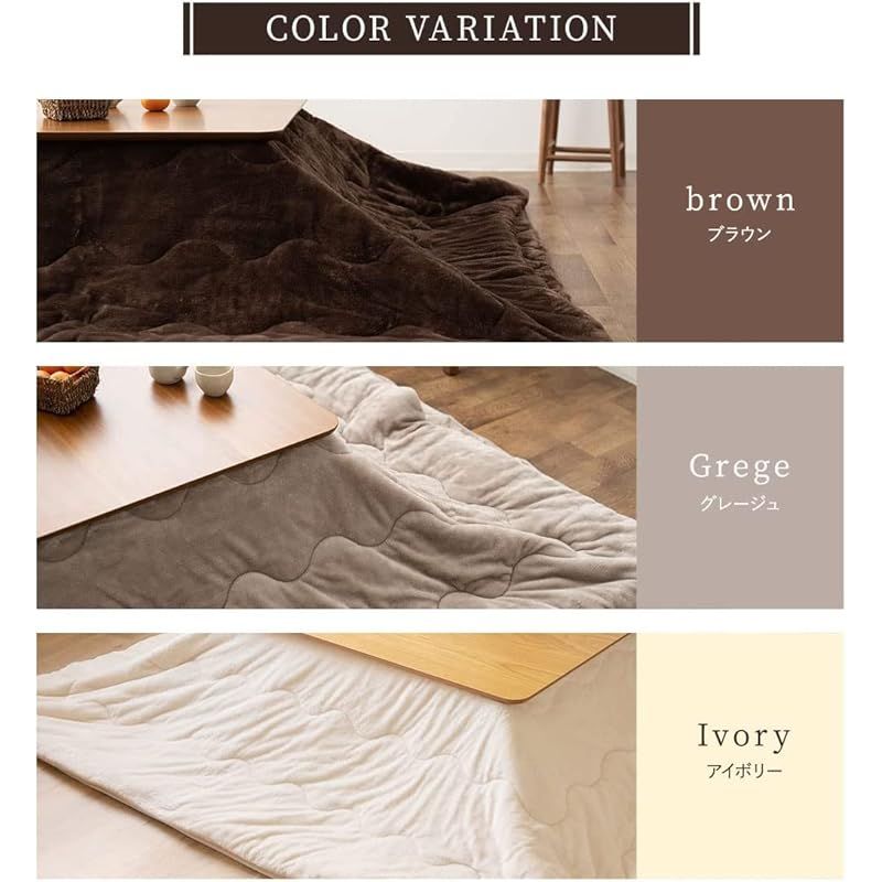 【こたつ敷き布団】表地:ポリエステル100%(280g/m2 ロングパイルフランネル8mm エムールヒートプラス使用)/中材:ポリエステル100%、アルミシート/裏面:不織布(スリッド加工)【洗濯】手洗い可能 【製造国】中国