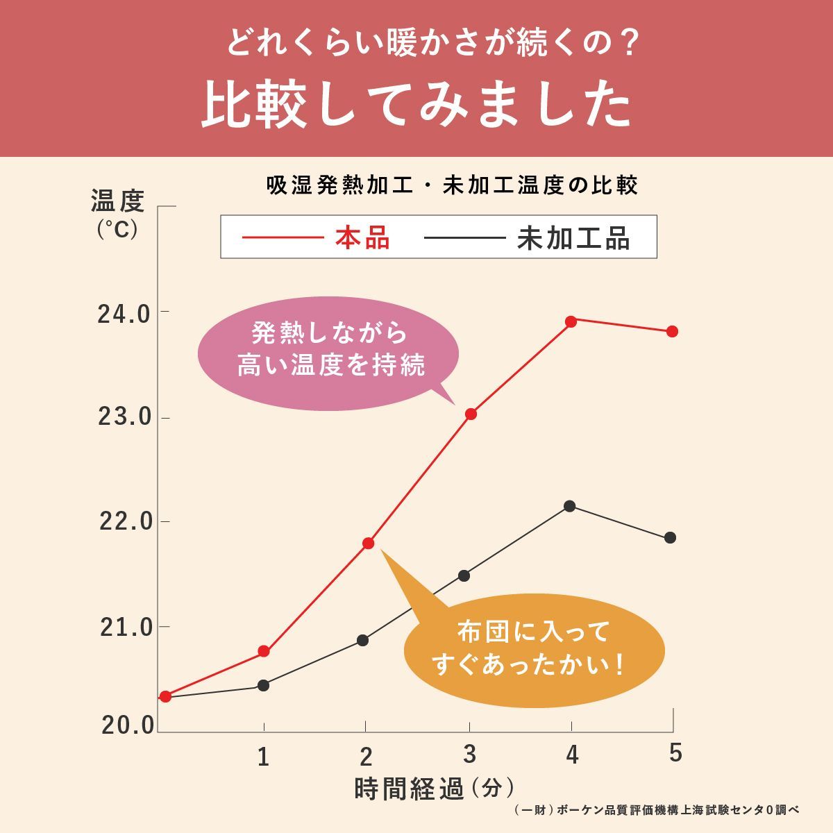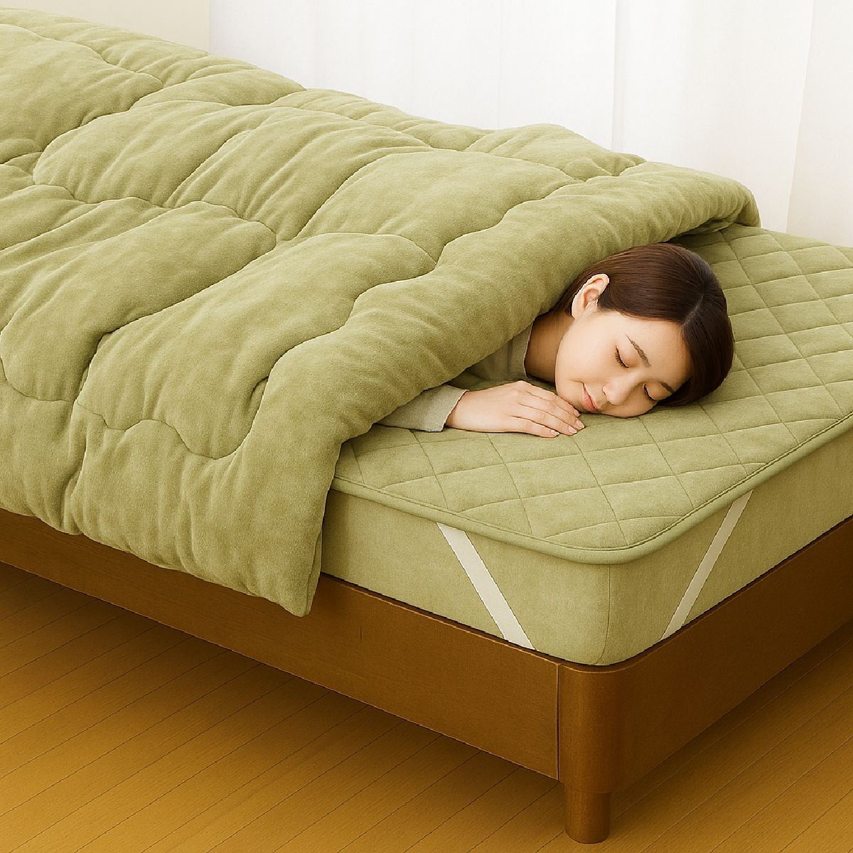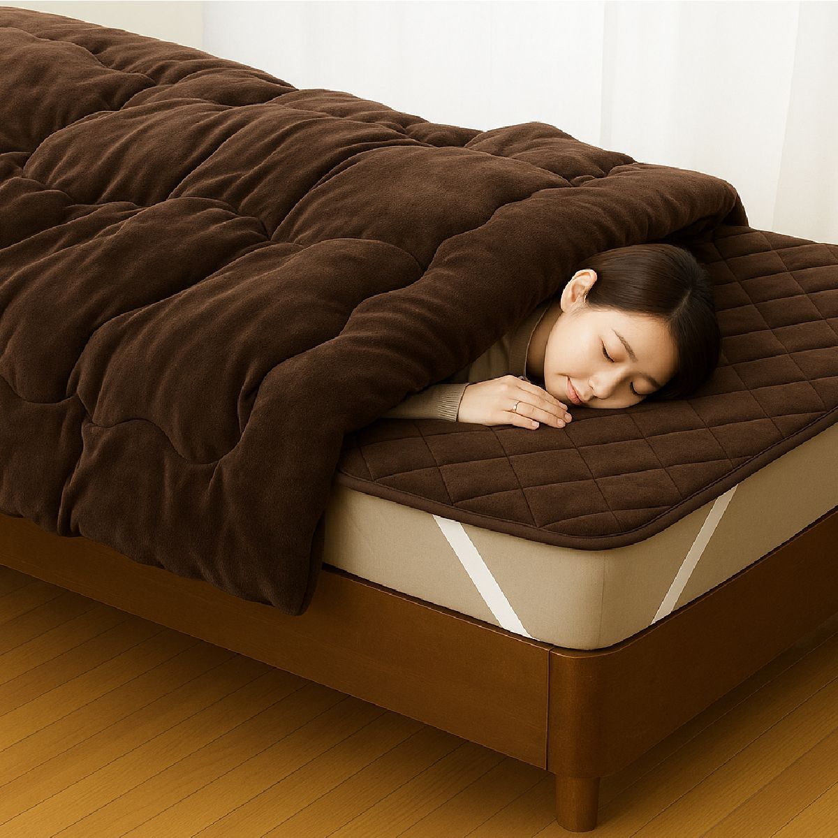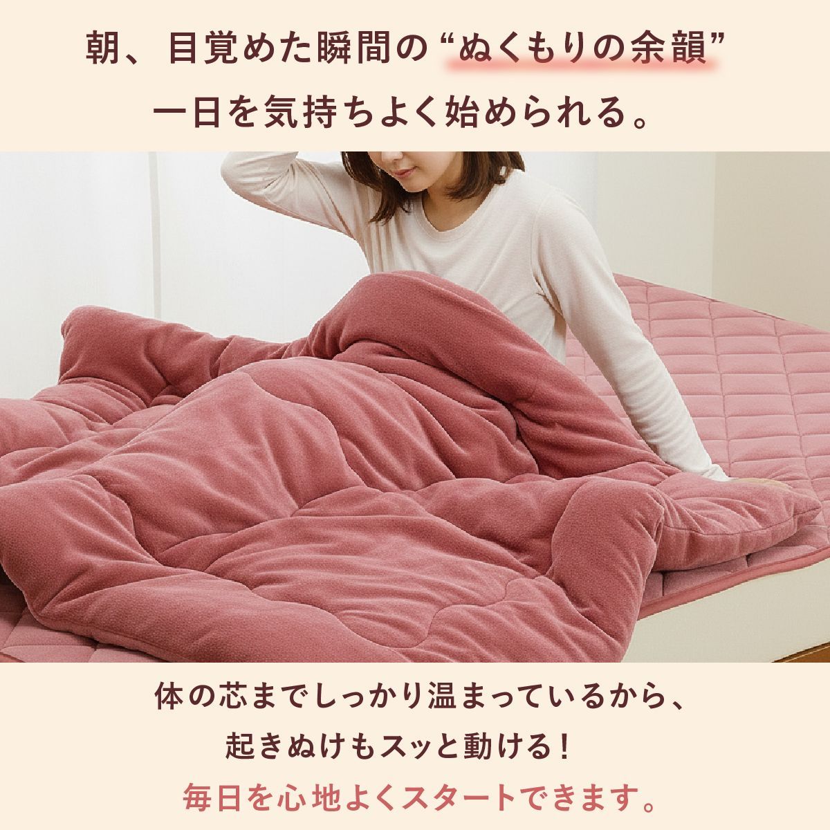掛布団と敷パッドの相乗効果で、わずか5分であたたかさを実感できます。
