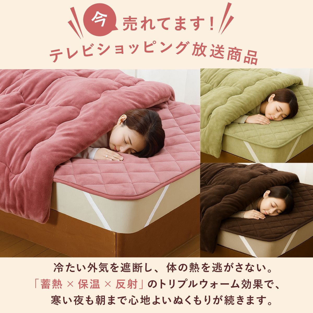 「5層構造トリプルウォームぽかぽか毛布布団セット」は、寝入りのヒヤッを解消し、わずか5分でぽかぽかに。