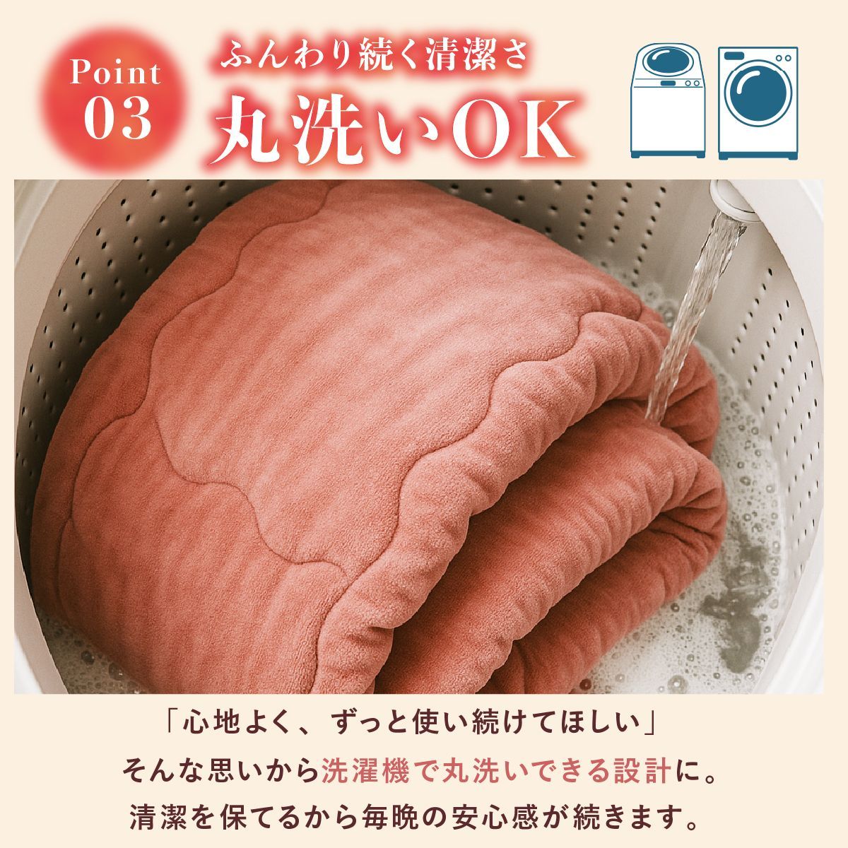 ・丸洗いOK(洗濯ネット使用)
