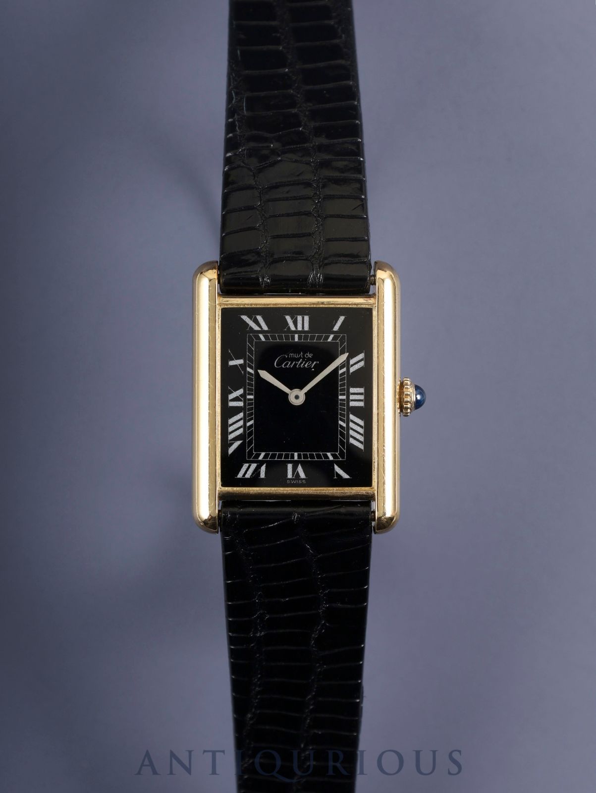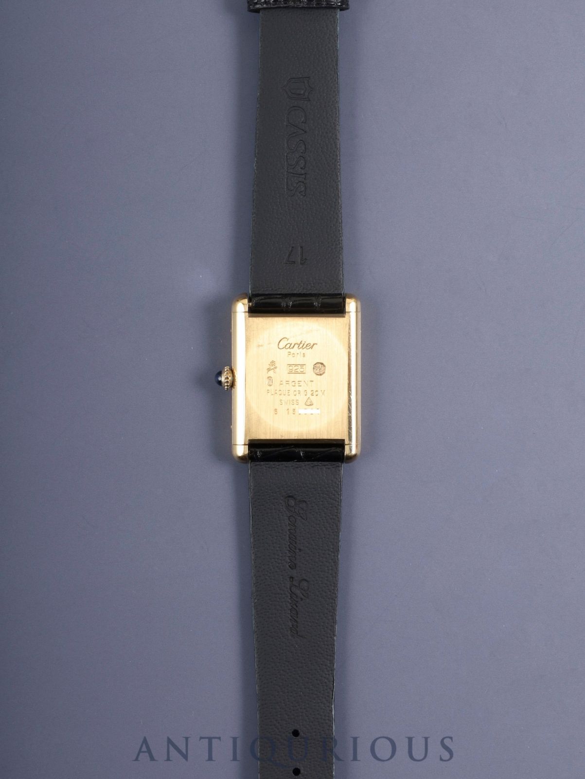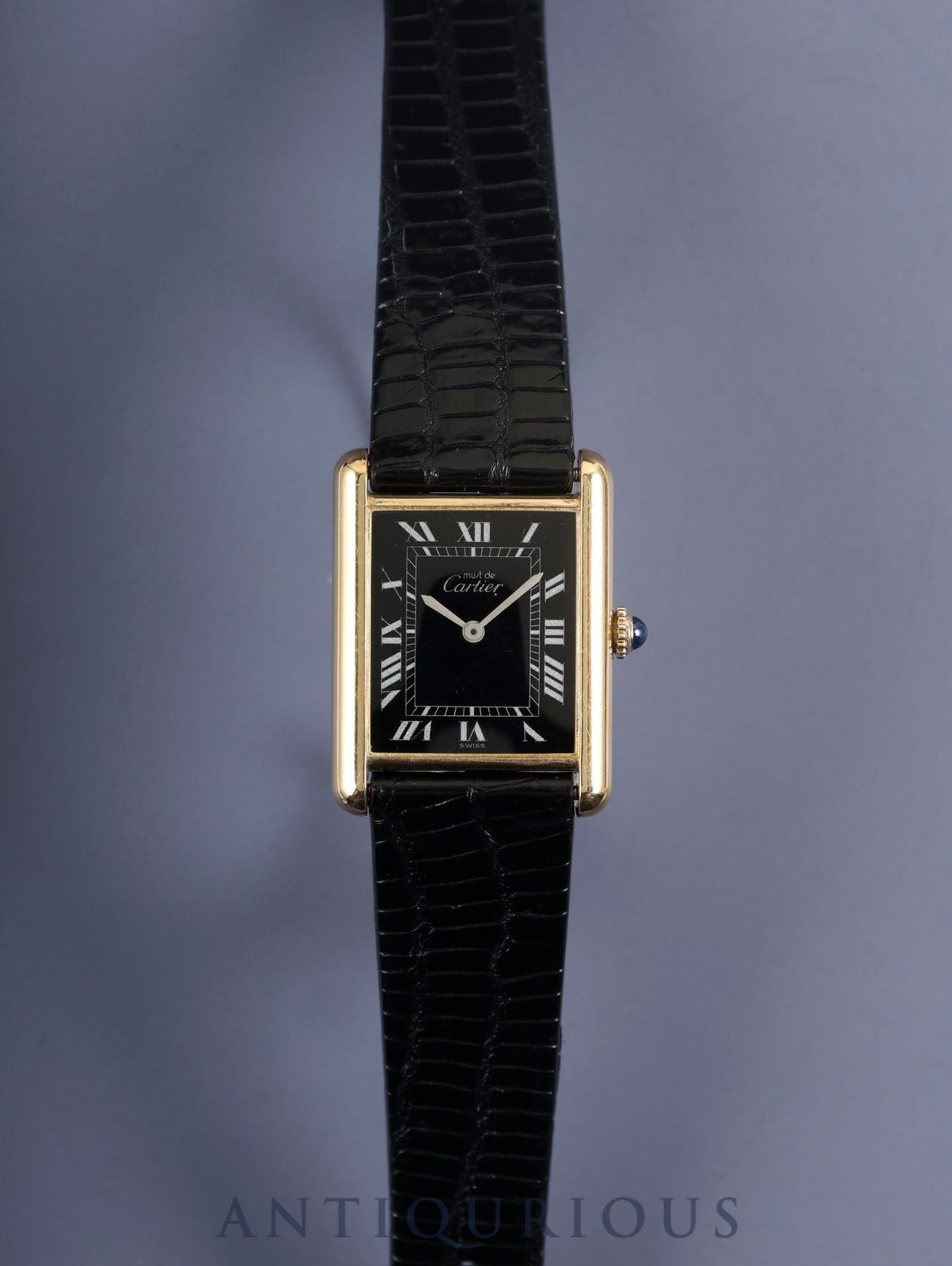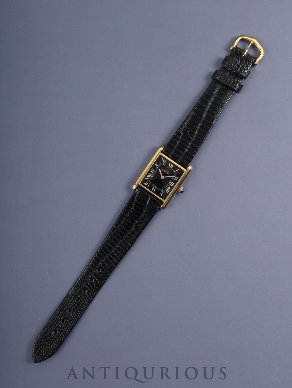 カルティエ マストタンク LM 手巻き Cal.78-1 SV925 革 純正尾錠 GP ブラックローマン文字盤 オーバーホール済み