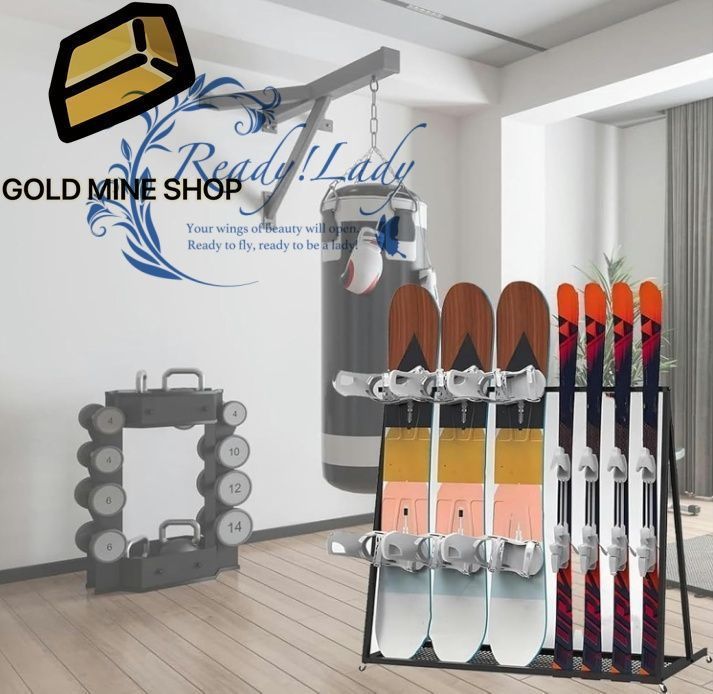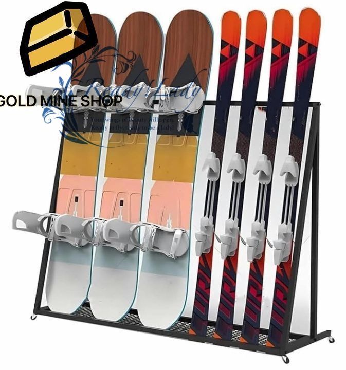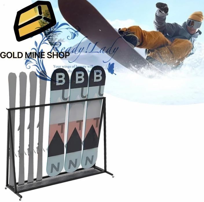 【スタンディングスノーボードホルダー】この収納ラックは、散らかったスノーボードを整理するだけでなく、床を占領してスペースが混雑するのを防ぎ、スペースを節約します