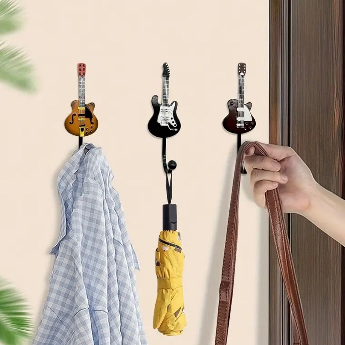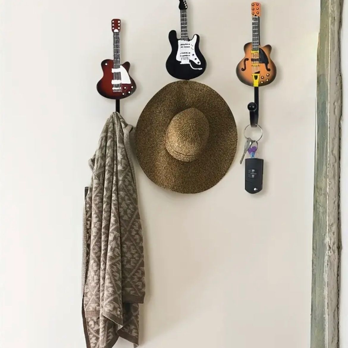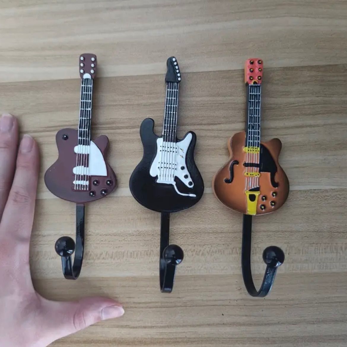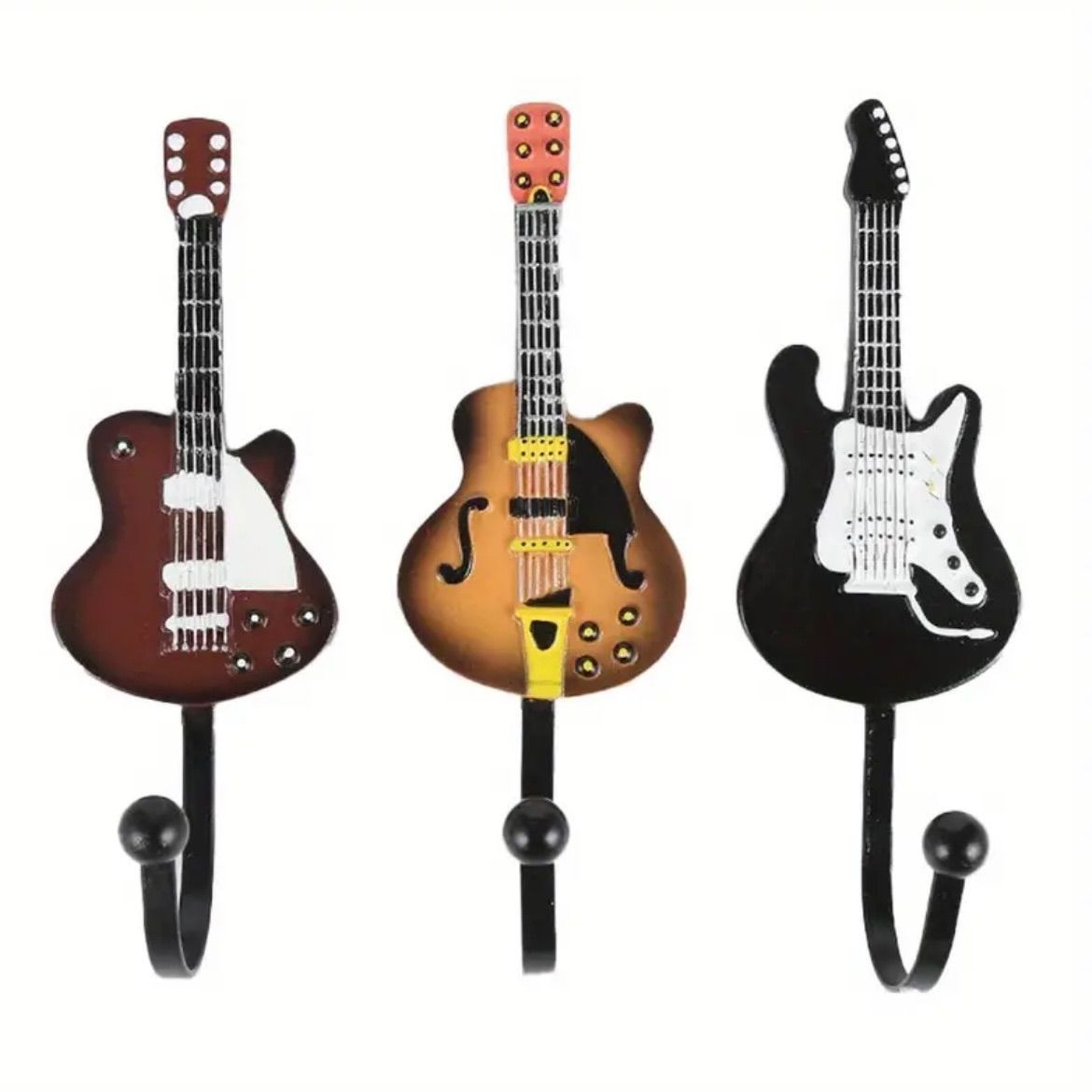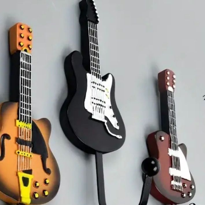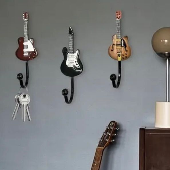 『レトロなギターヘッドをモチーフにした、ユニークな壁掛けフック3個セット。