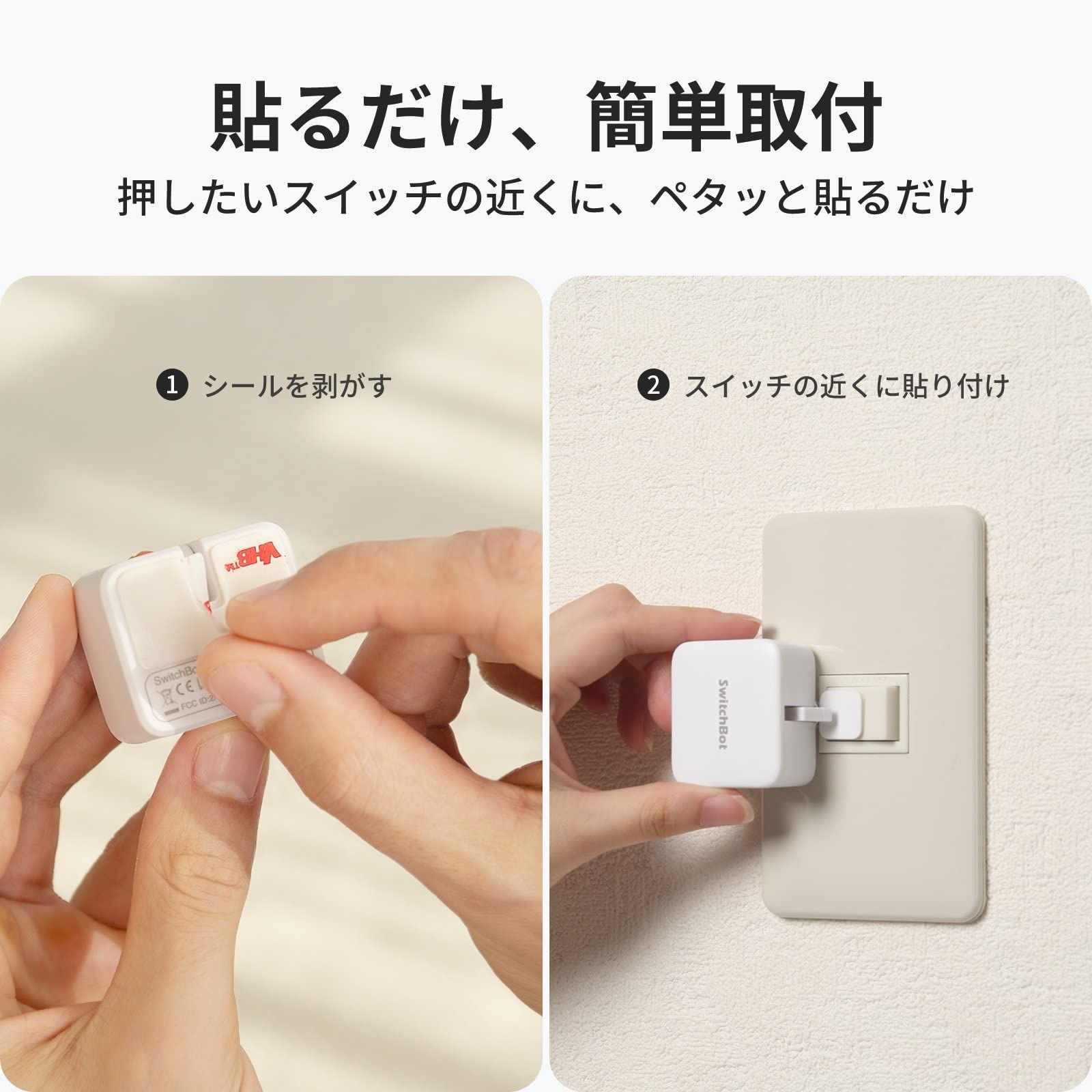★【3分で設置完了、取付カンタン】 SwitchBotアプリにて数分程度の登録作業を済ませて、本体背後のシールを剥がし、スイッチの横に取り付けて、すぐに使えます!IoTデバイスの初心者様もOKです。
