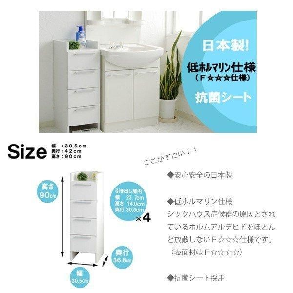 特大SALE チェスト 4段 洗面所 収納 スリム 木製 サニタリー ランドリー 30cm 隙間 すき間 引出 下着 新生活 組立