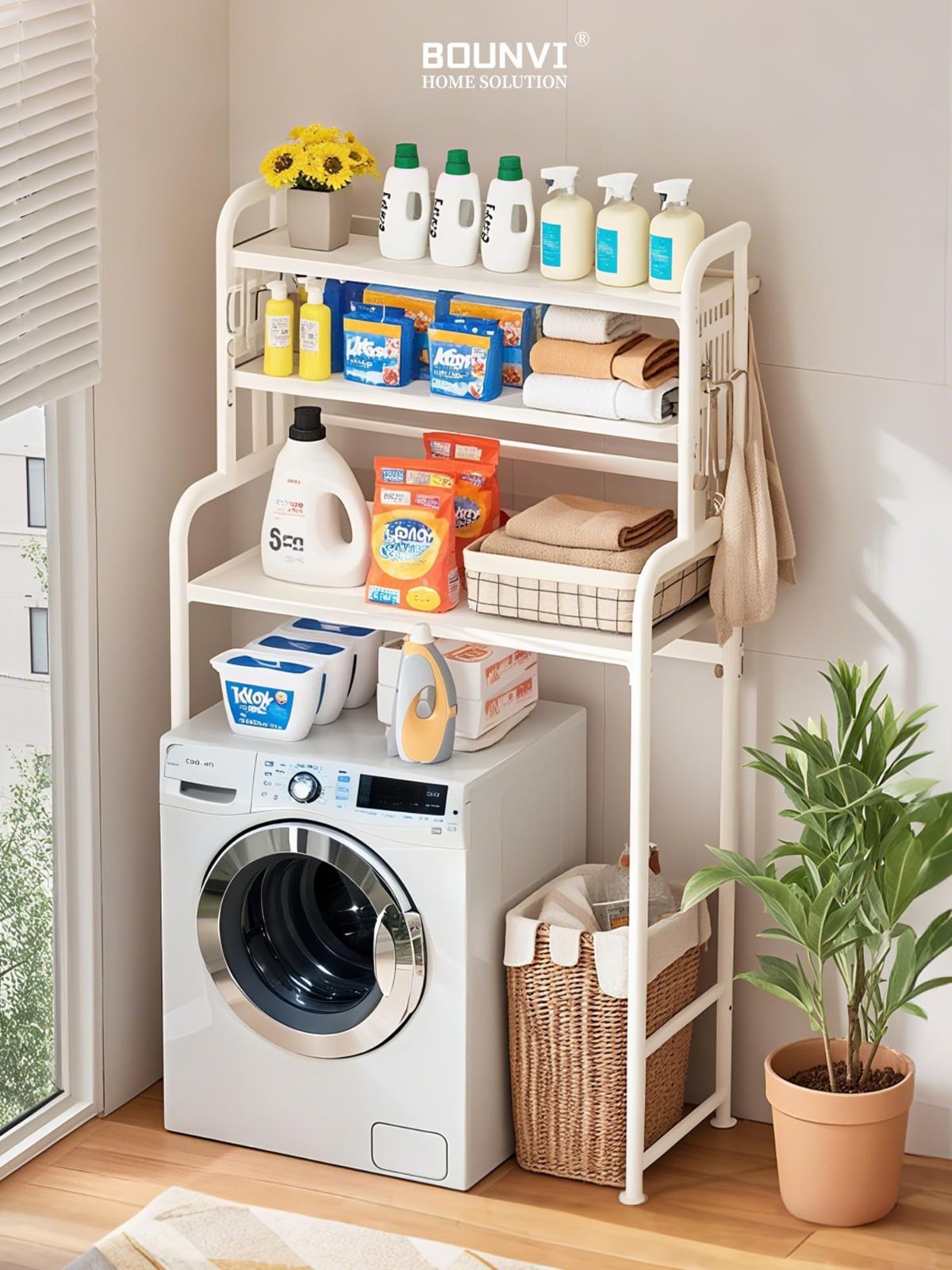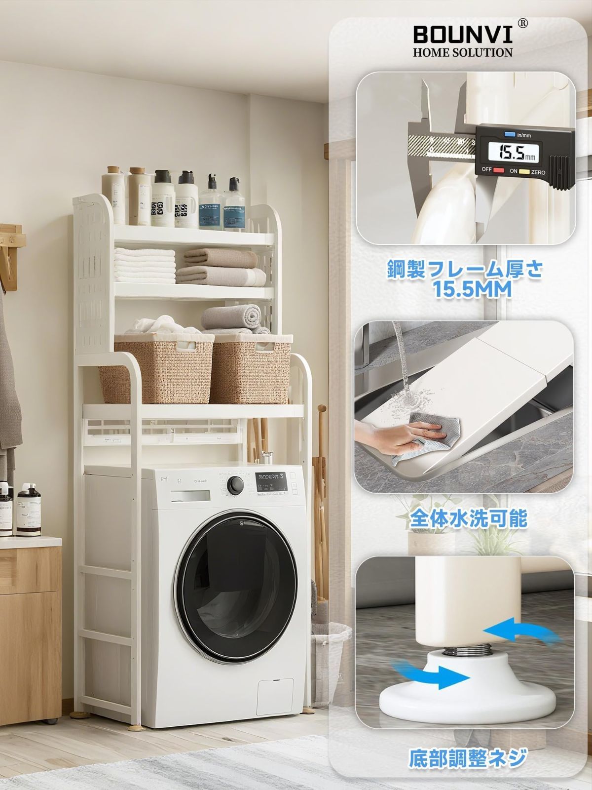 新商品 深いグレー 日本語の説明書付き 洗濯機上収納棚 多用途 大承重 有孔ボード付き 51 81cm 幅伸縮タイプ 3段階に高さ調節 収納棚 ランドリー ラック 洗濯機 Bounvi