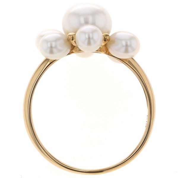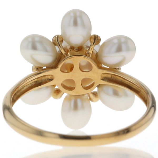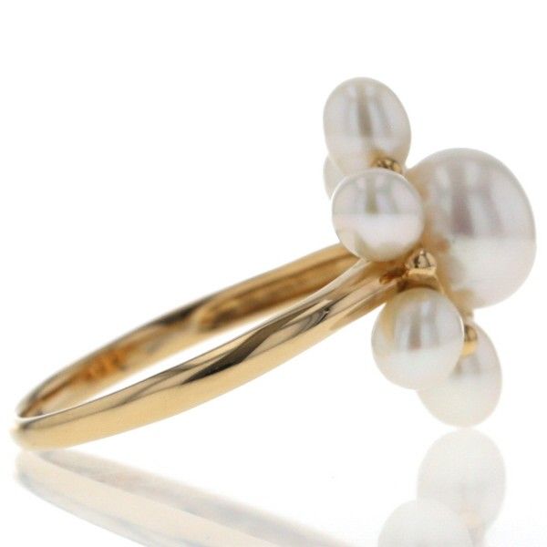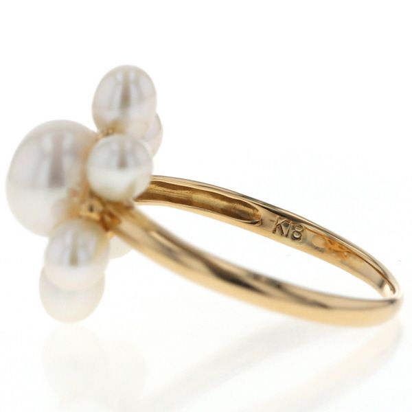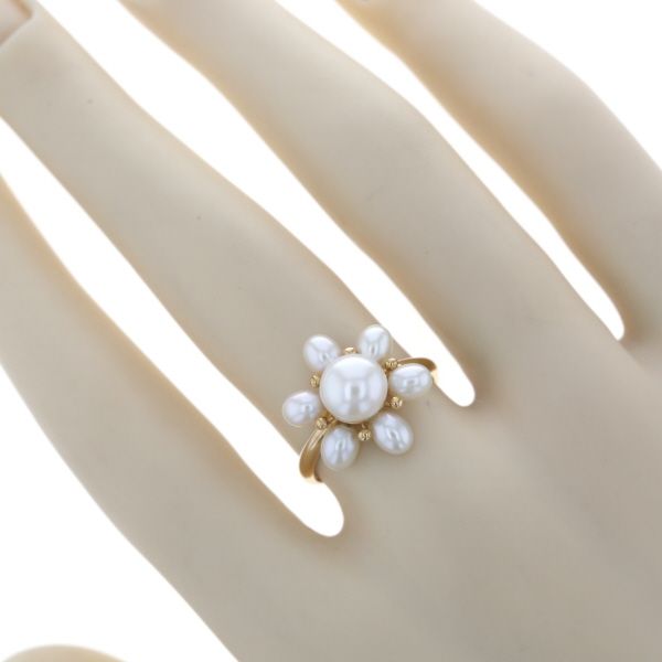 K18YG イエローゴールド リング パール 真珠 7.0mm 3.8mm 7粒 花 フラワー デザイン 指輪 10号 仕上済 zz